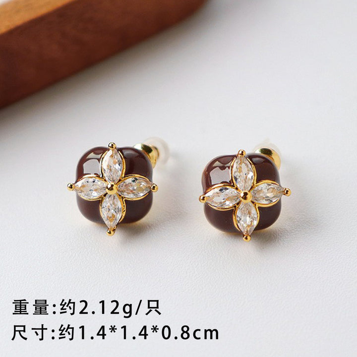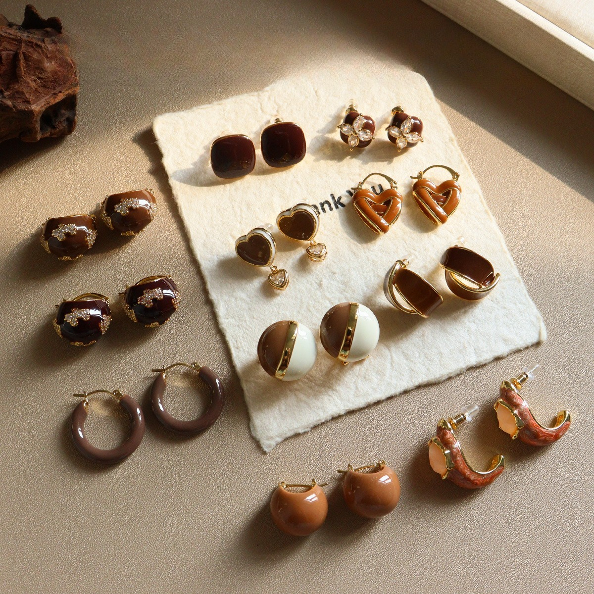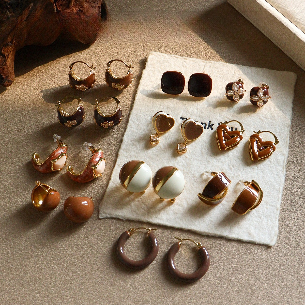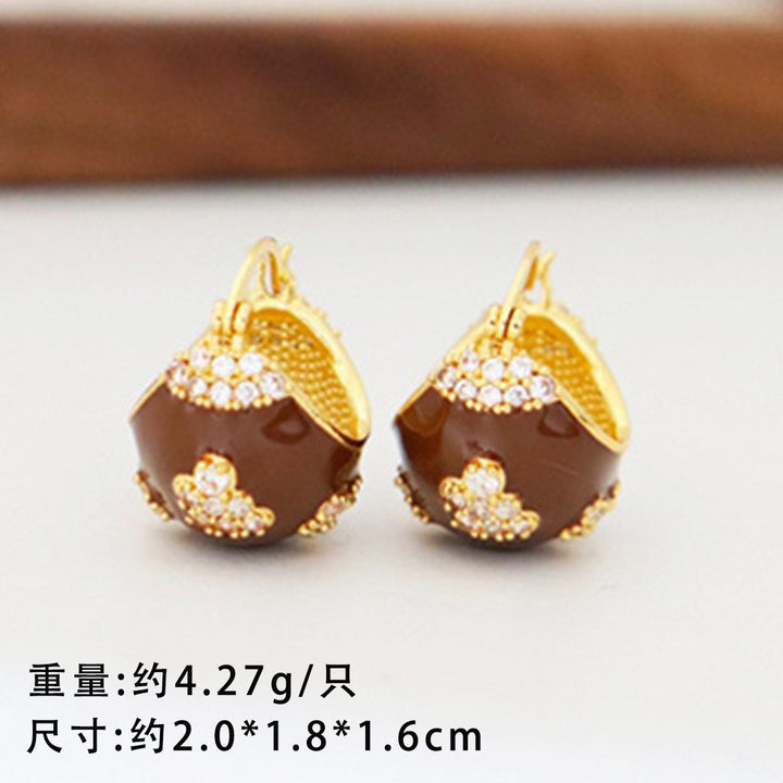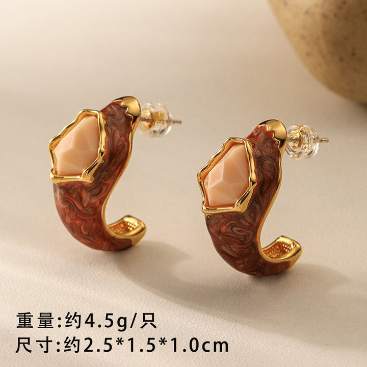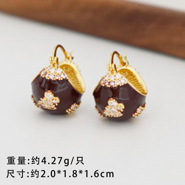 Retro fashion exquisite oil drop enamel earrings high sense medieval niche