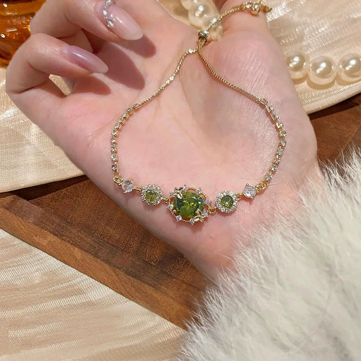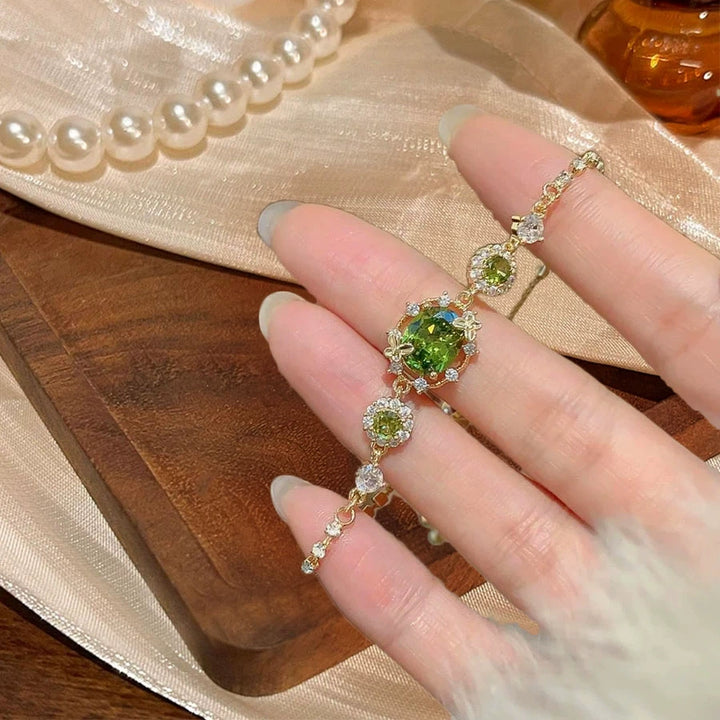Exquisite full diamond super flash olive green zircon bracelet romantic