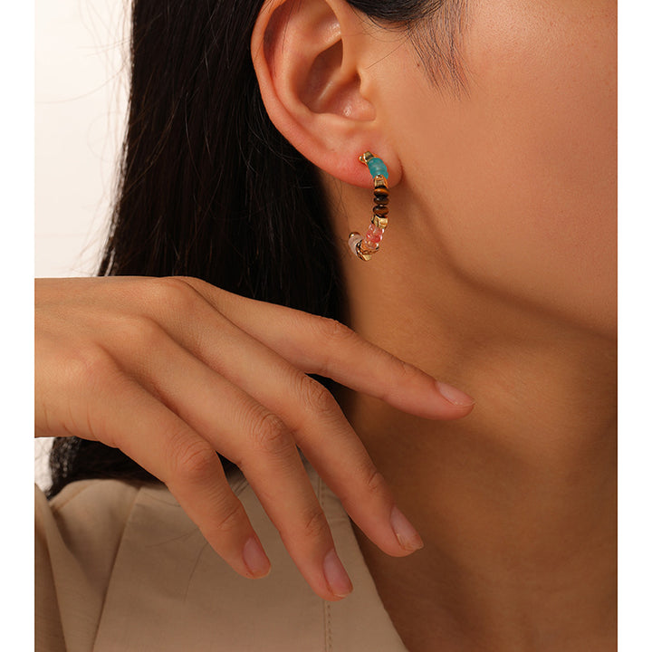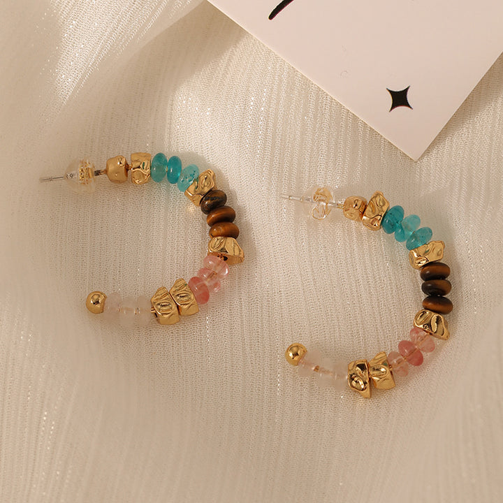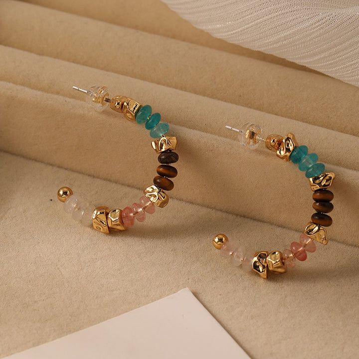 C- Shaped Colorful Natural Stone Beaded Earrings