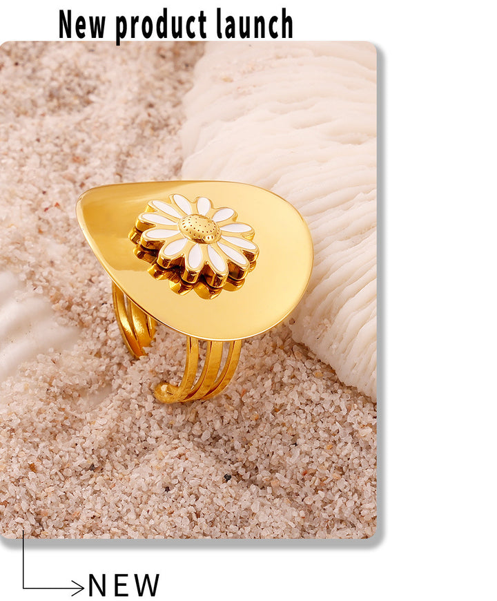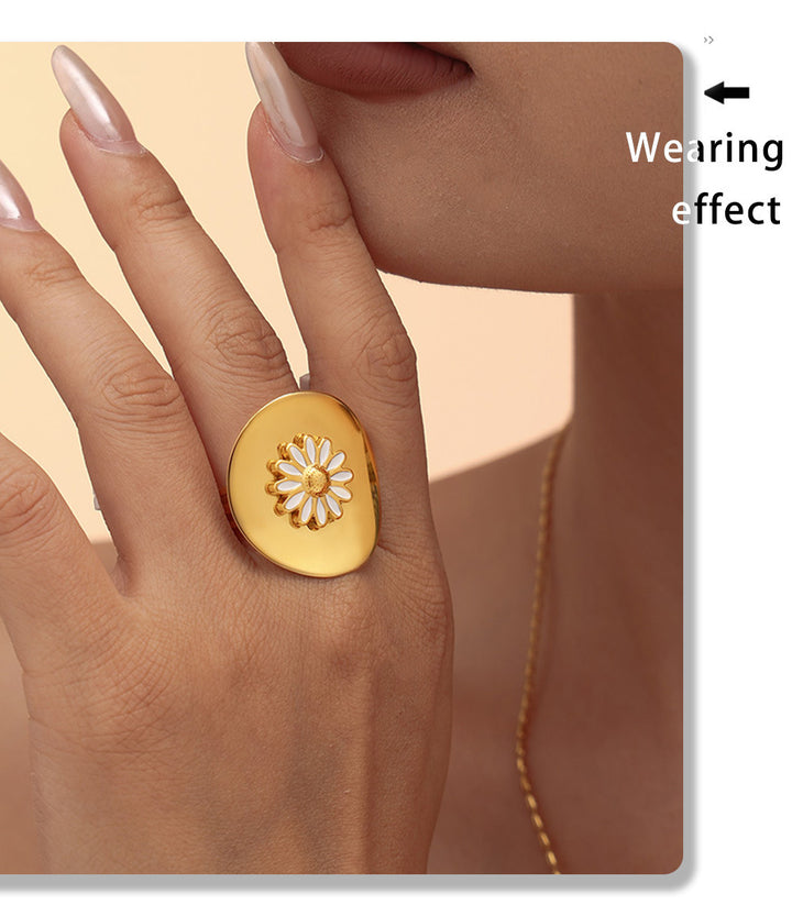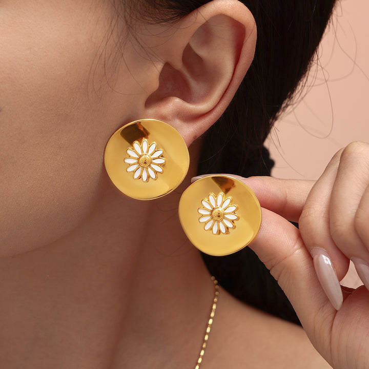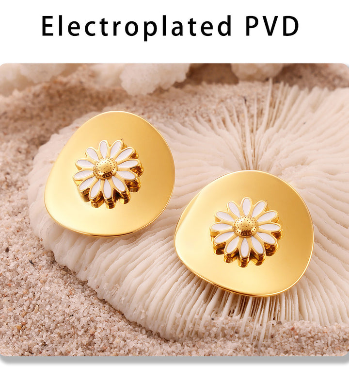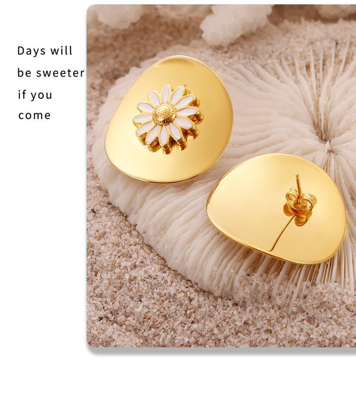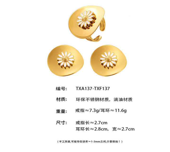 Daisy Ring Stud Earrings 18k Gold Plated Stainless Steel
