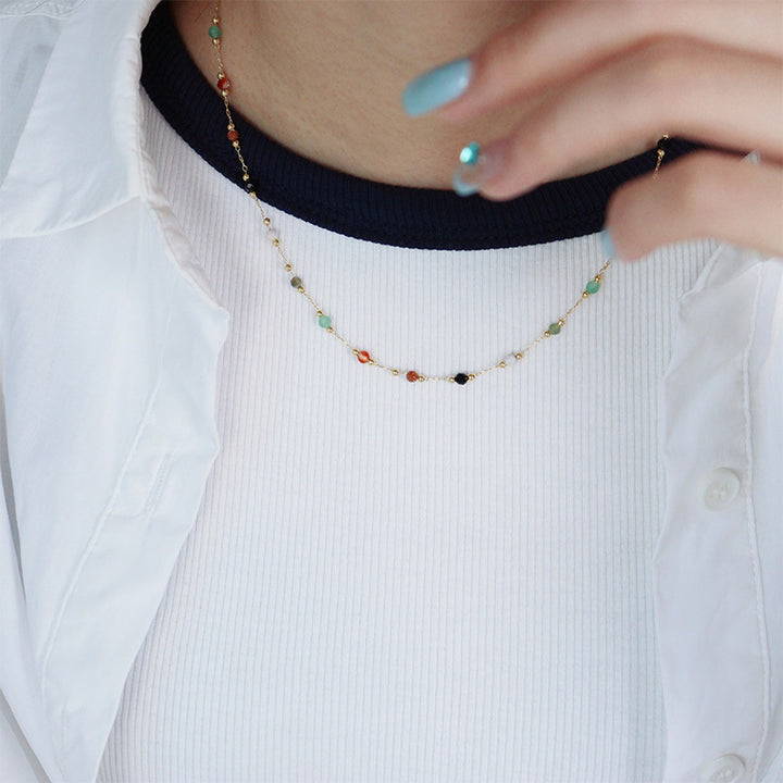 Fashion Versatile Color Dopamine Zircon Bead Necklace Light Luxury