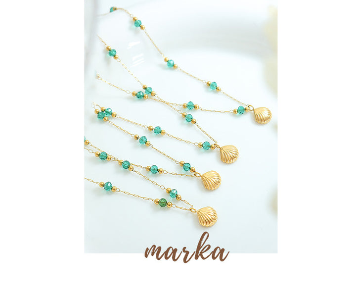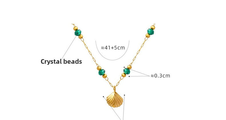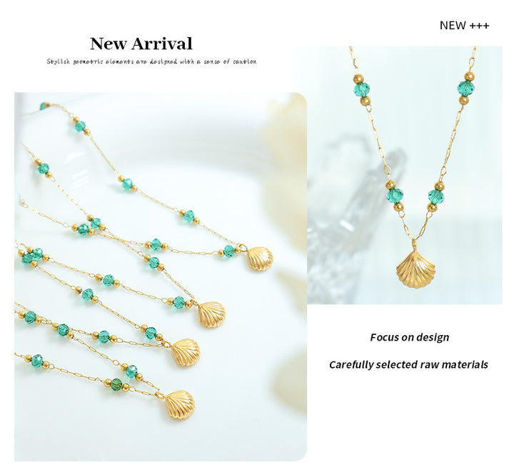 Exquisite Crystal Pearl Shell Pendant Necklace Stainless Steel 18K Gold Plated