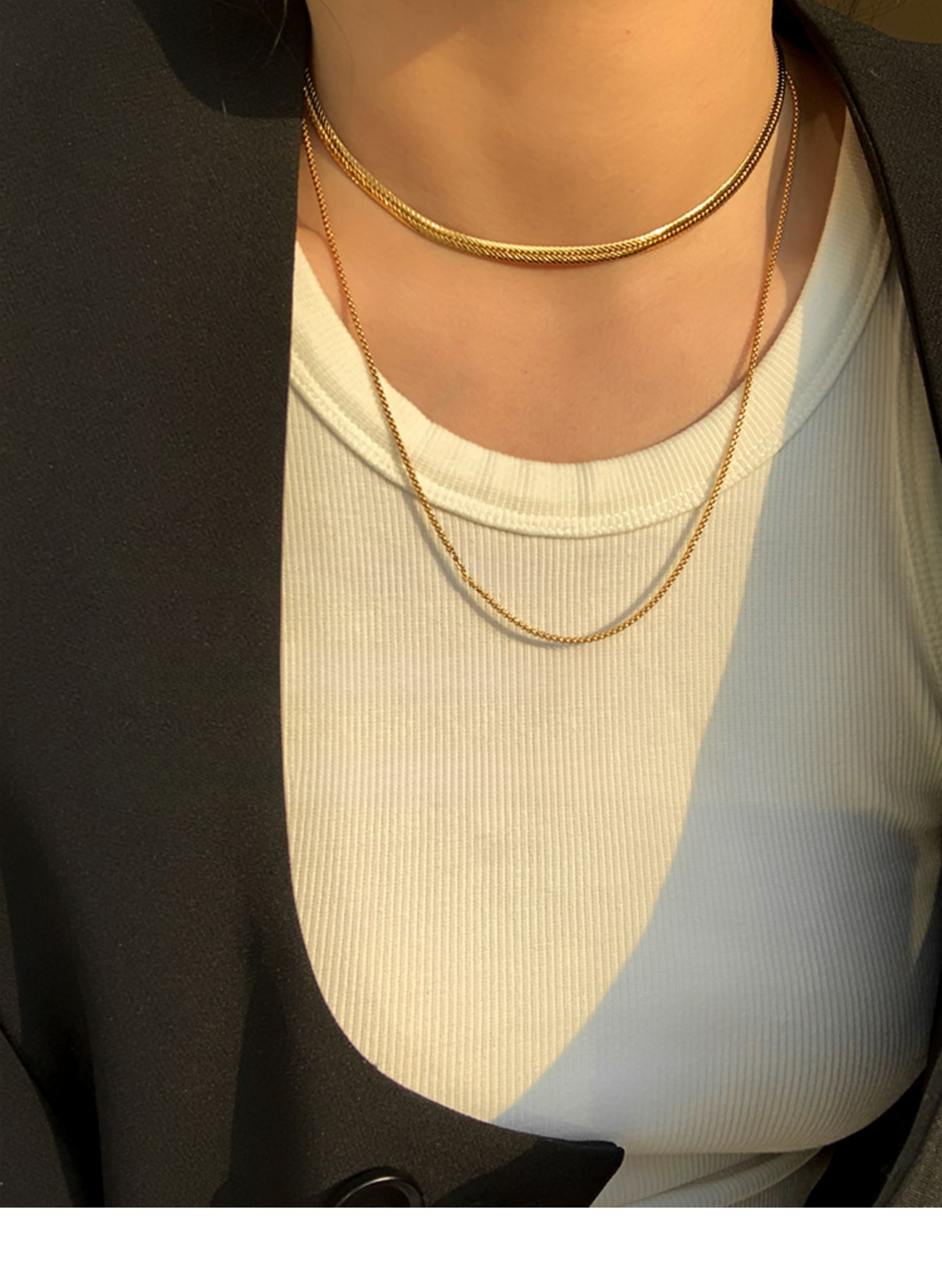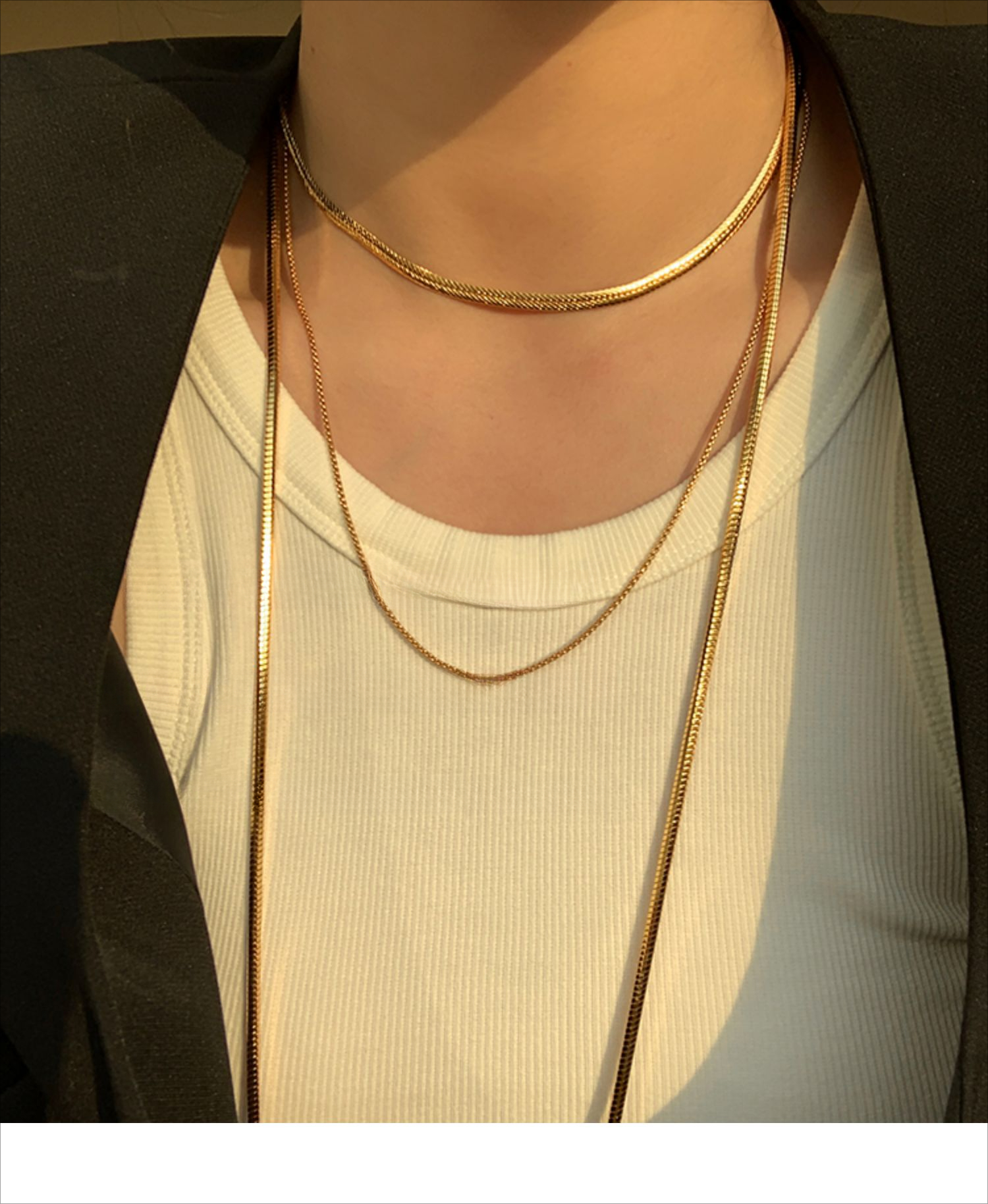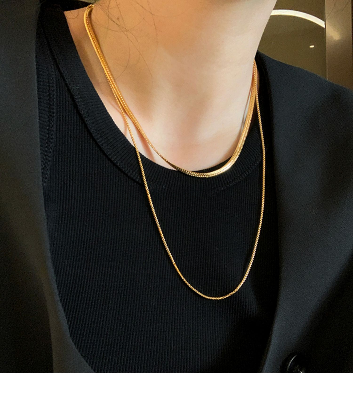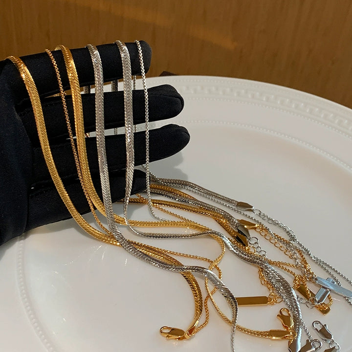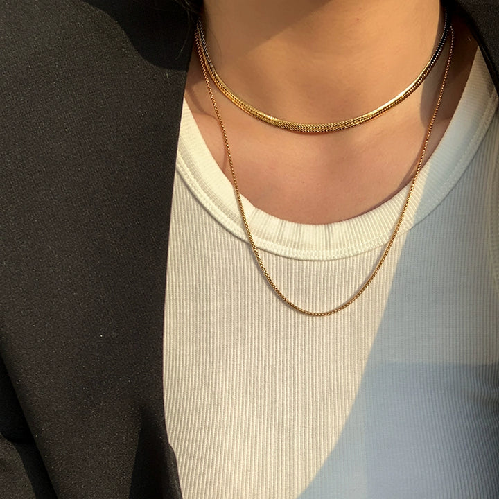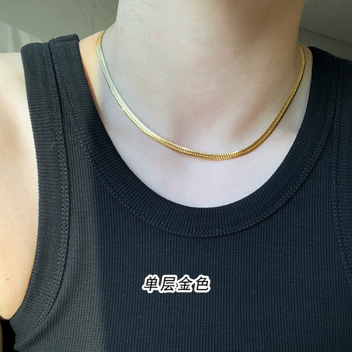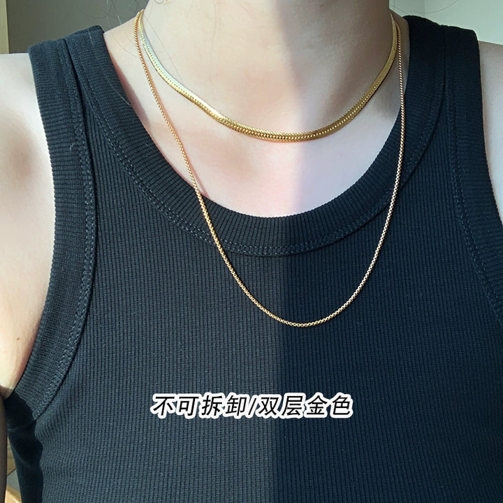 Non-fading double-layer stacked snake bone chain gold necklace neck chain