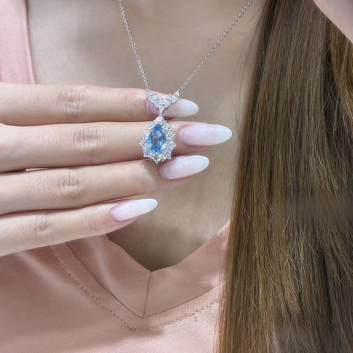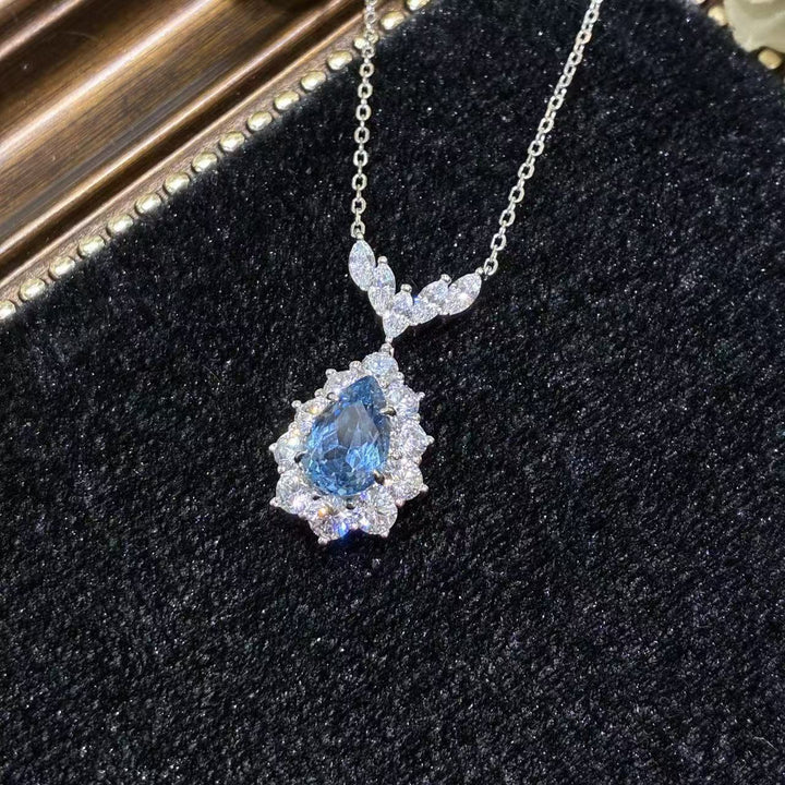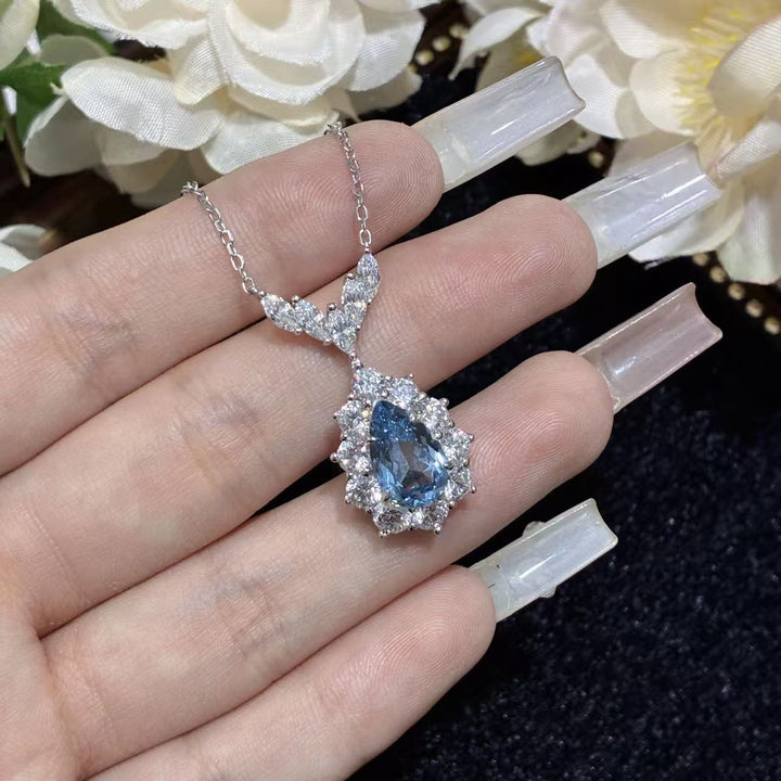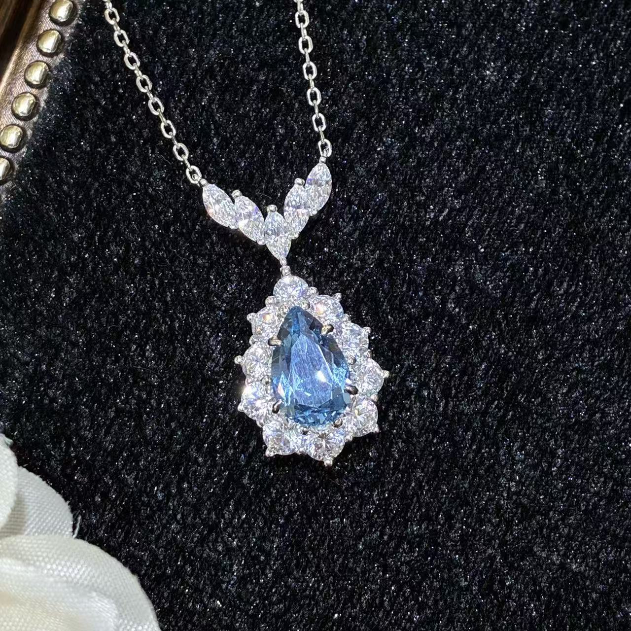 Artificial sea blue spinel pendant necklace / Water drop 3 carats (7 * 11mm)