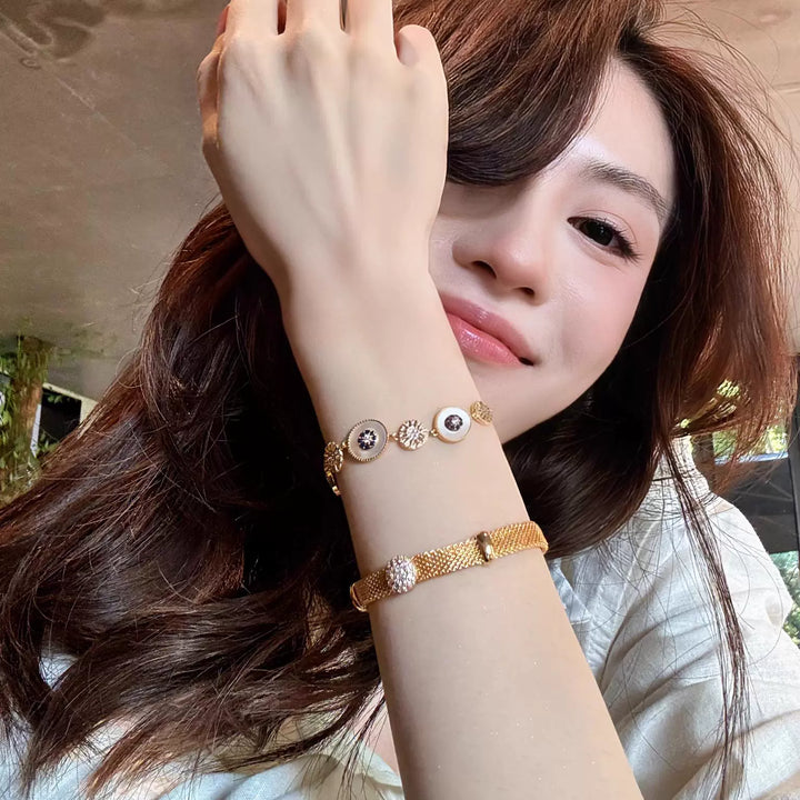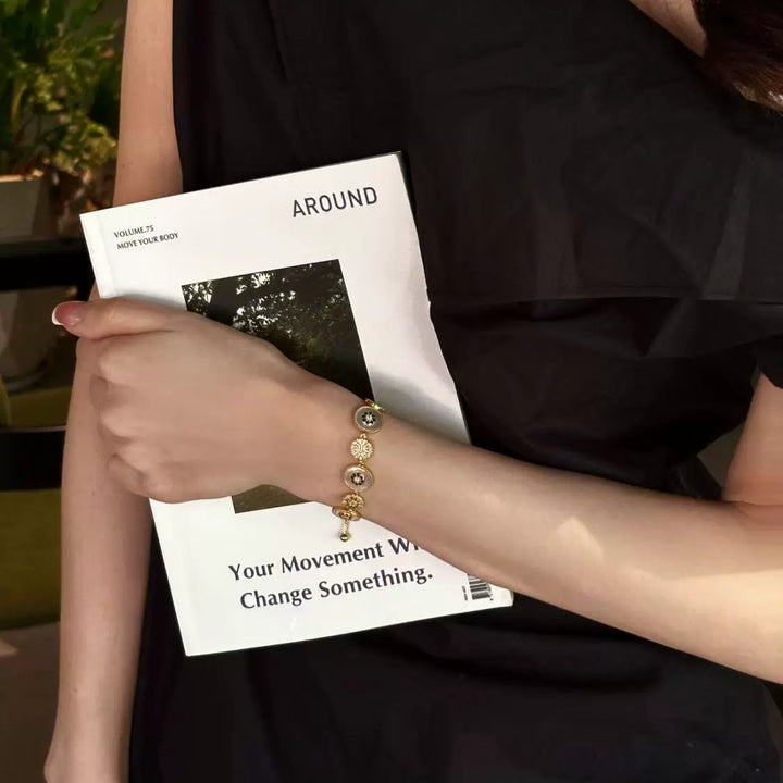 Natural mother shell gold bracelet, octagram advanced pull-up adjustable bracelet