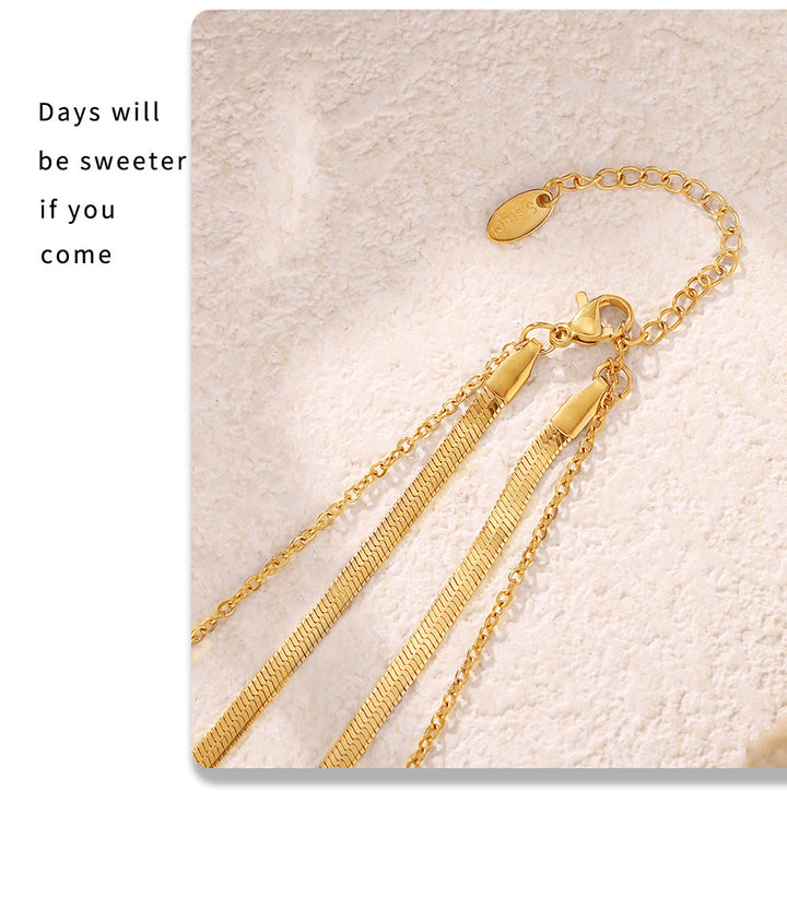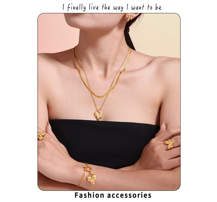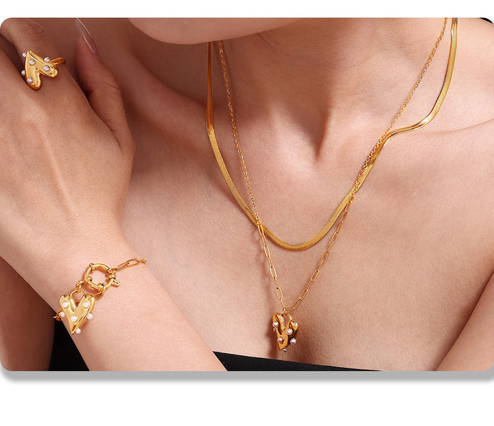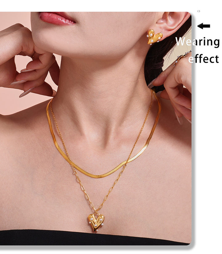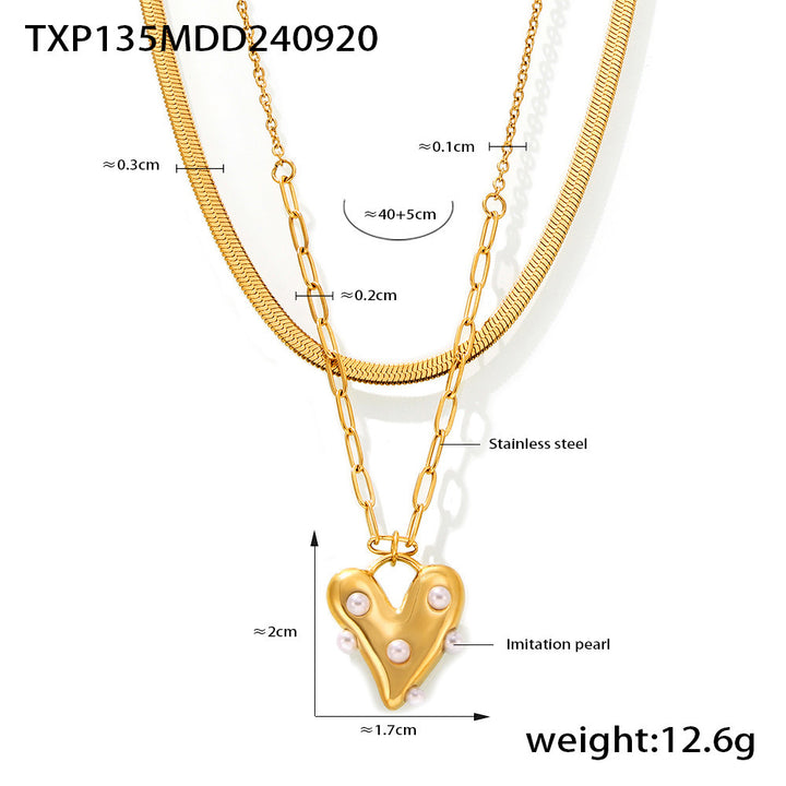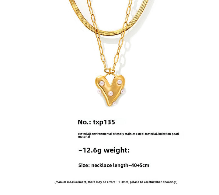 TXP135-Gold Imitation Pearl Heart Double Layer Necklace