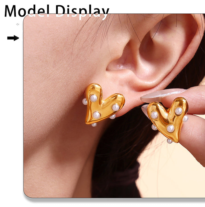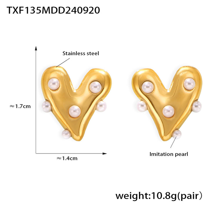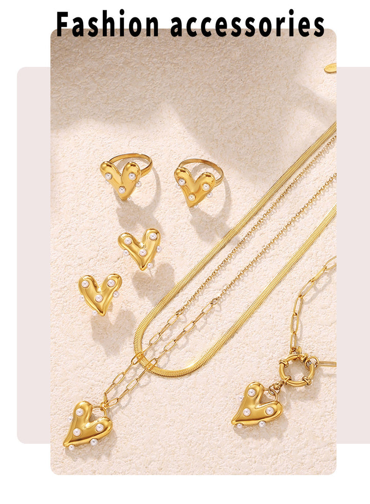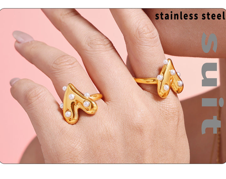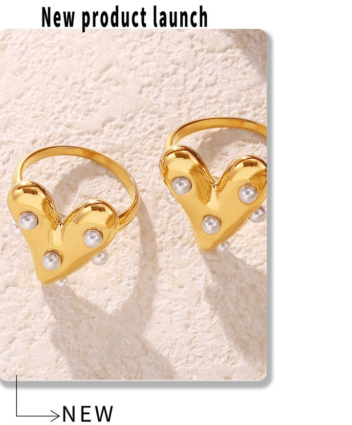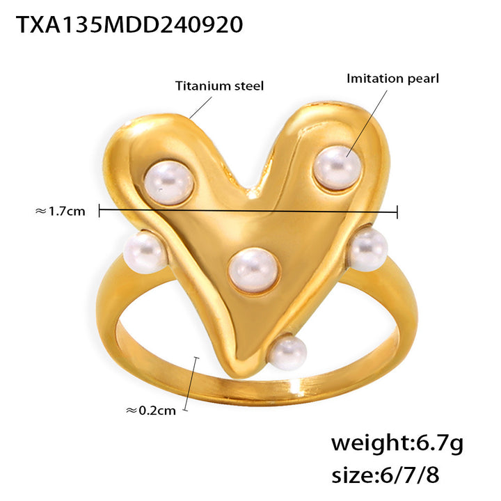 TXA135-Gold Imitation Pearl Heart Ring-Size 8