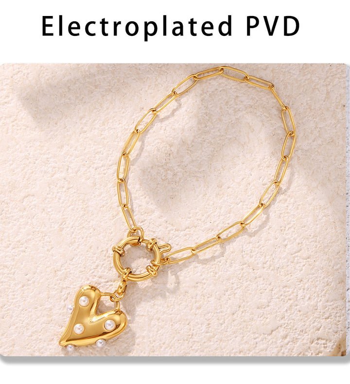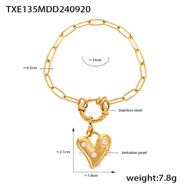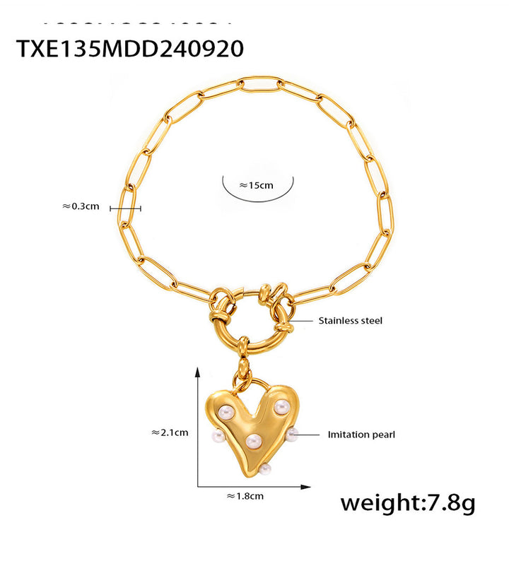 TXE135-Gold Imitation Pearl Heart Bracelet