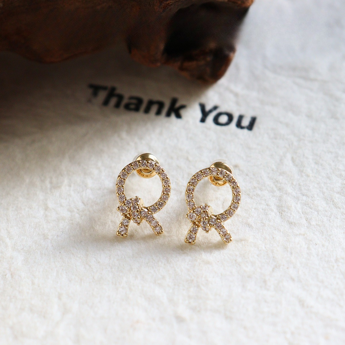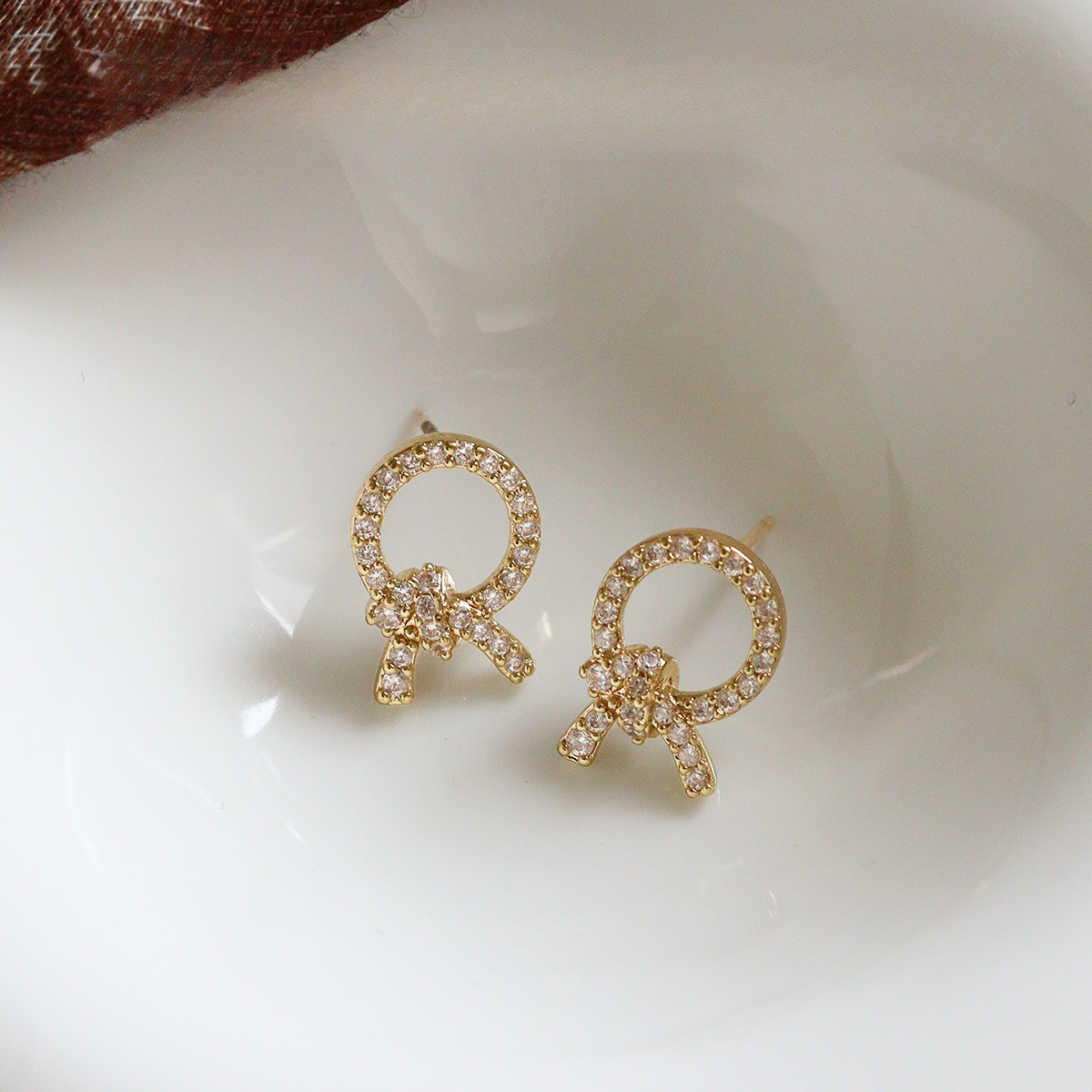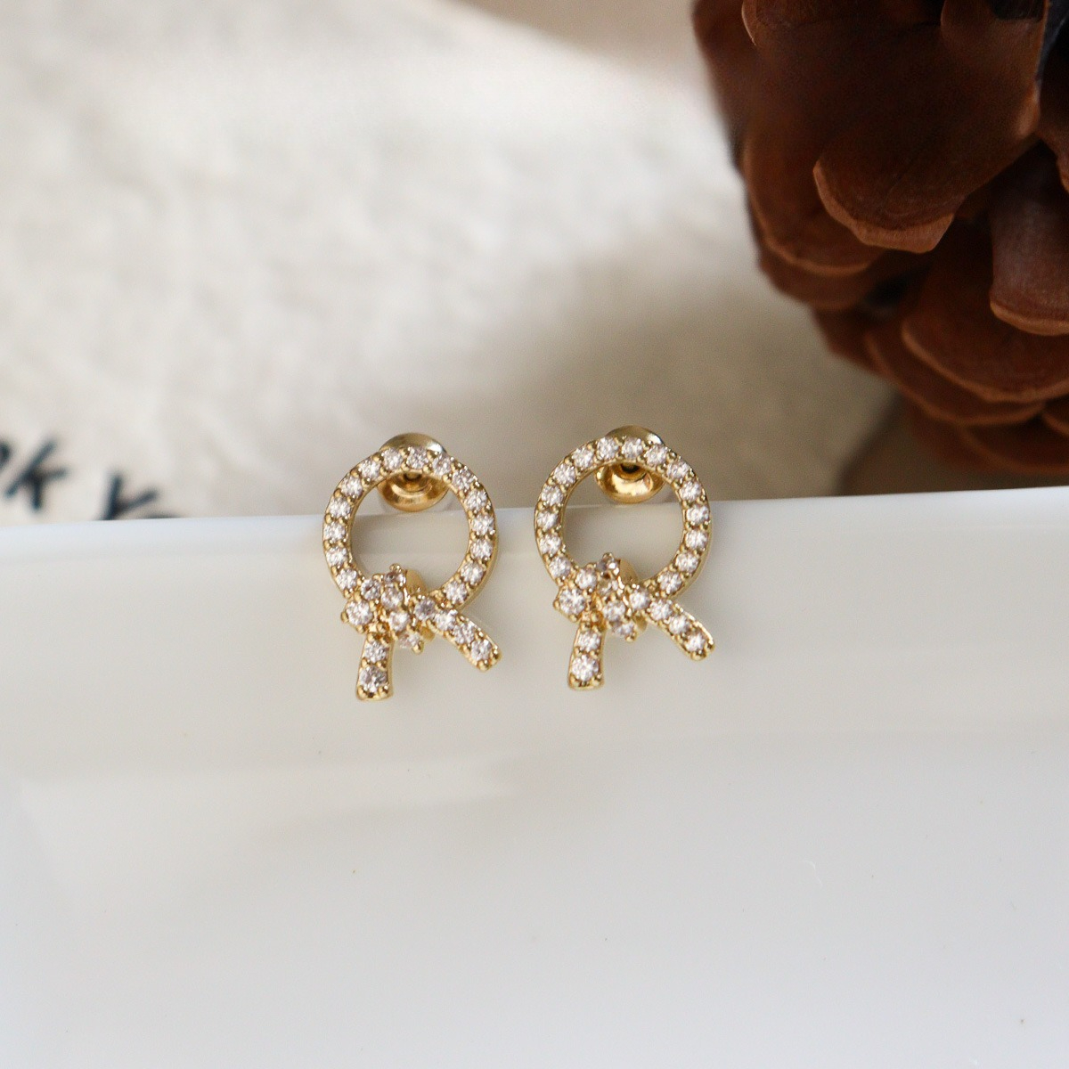 Stylish, simple and exquisite, micro-inlaid zircon bow stud earrings, niche and high-end sense