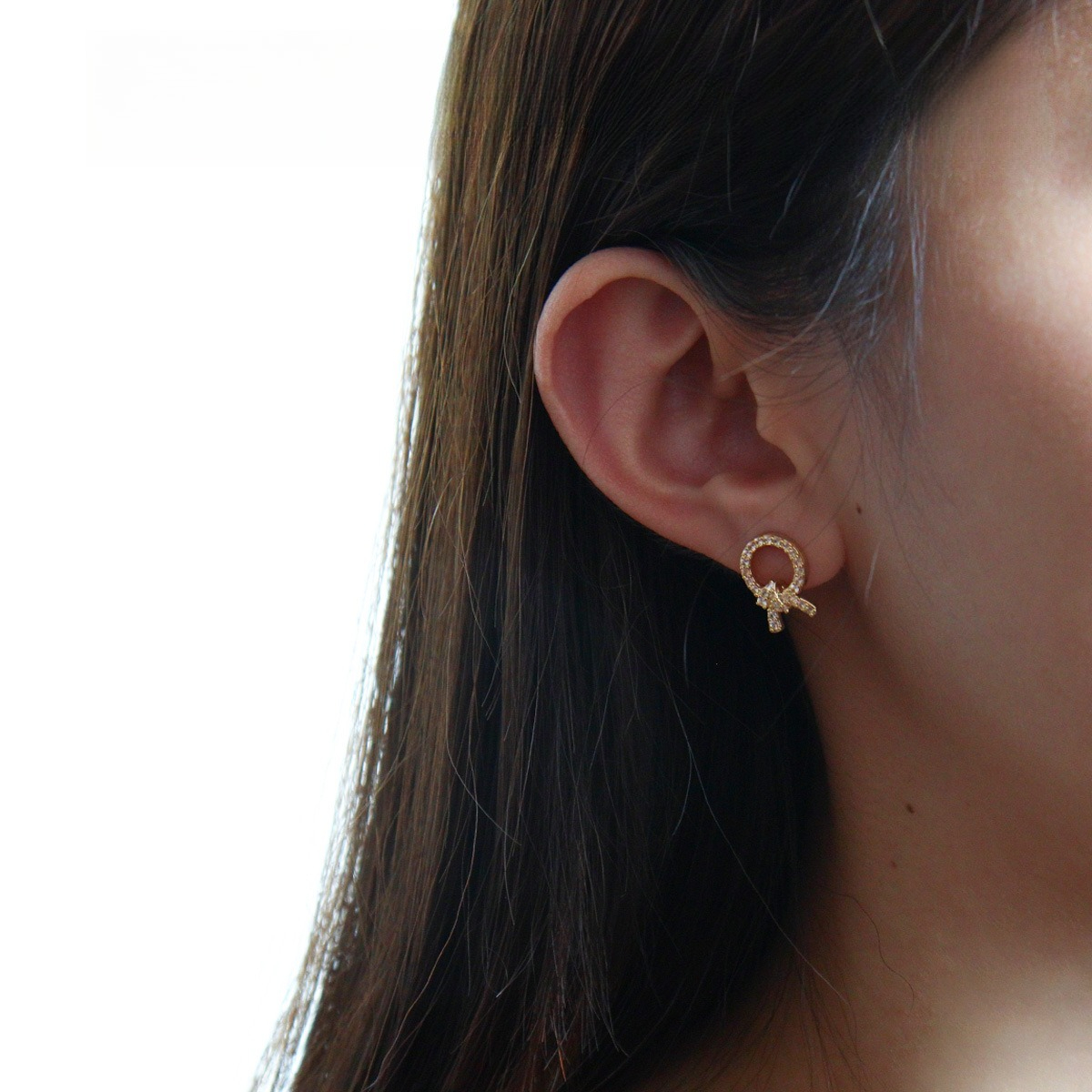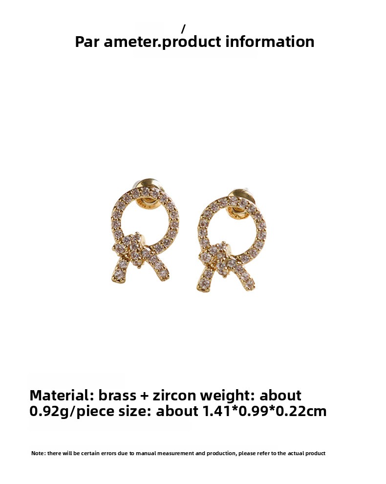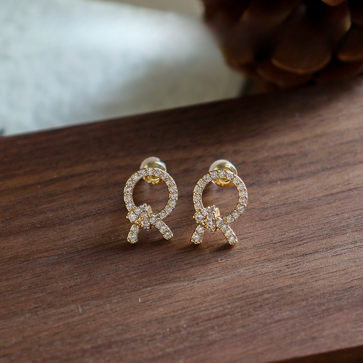 Stylish, simple and exquisite, micro-inlaid zircon bow stud earrings, niche and high-end sense