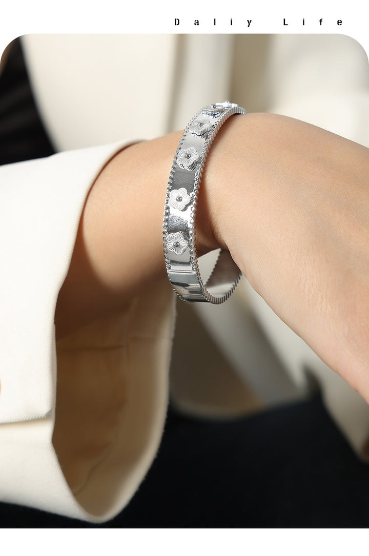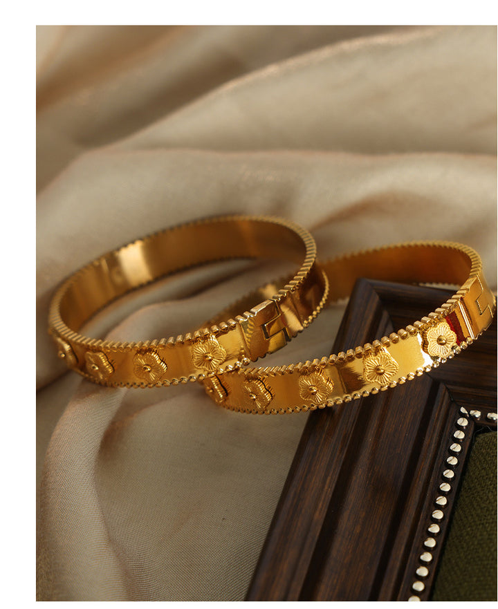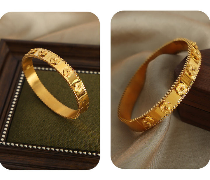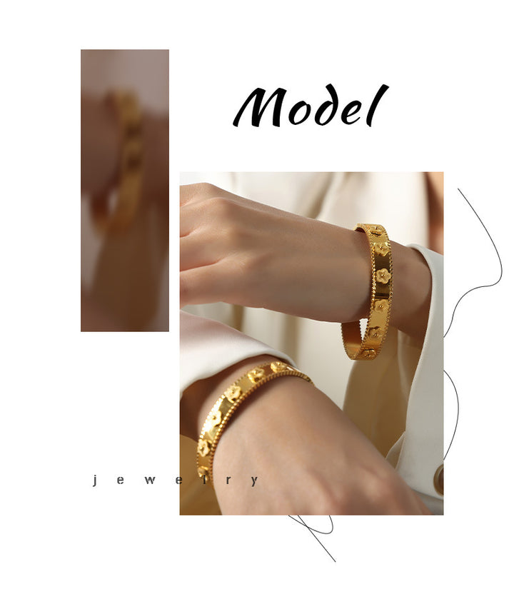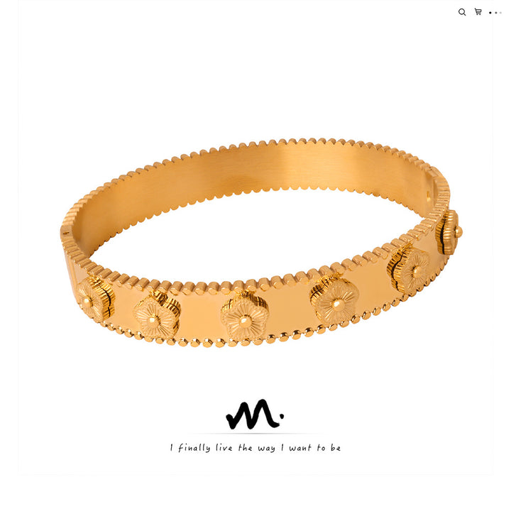 Luxury Titanium Steel Gold-Plated Flower Bracelet