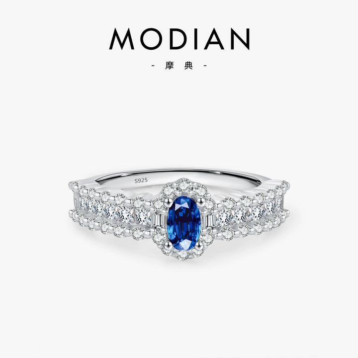 S925 sterling silver egg-shaped simulation diamond sapphire ring women's retro bright full diamond ring