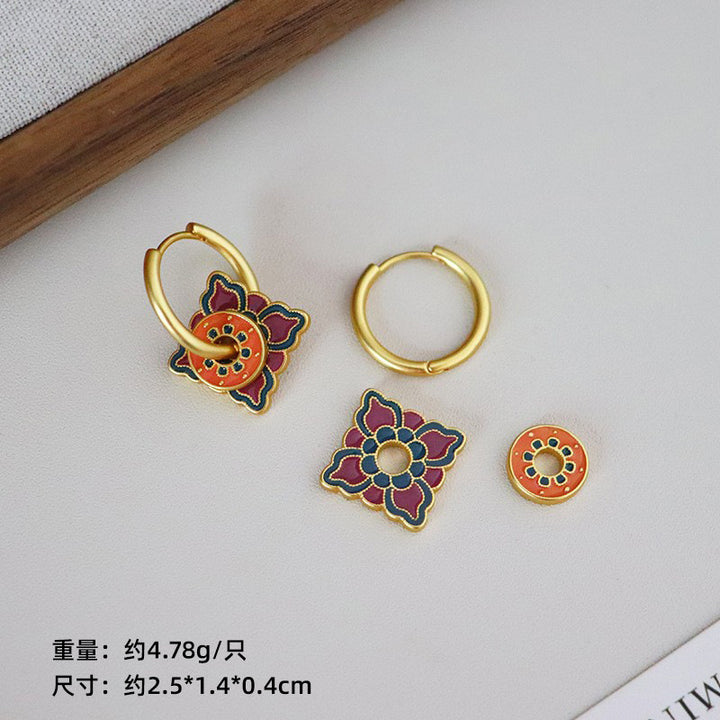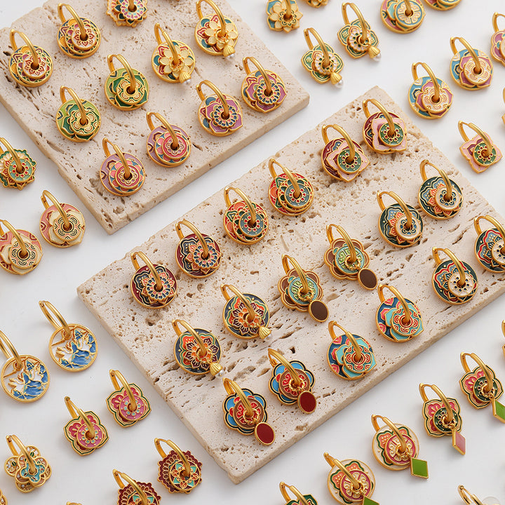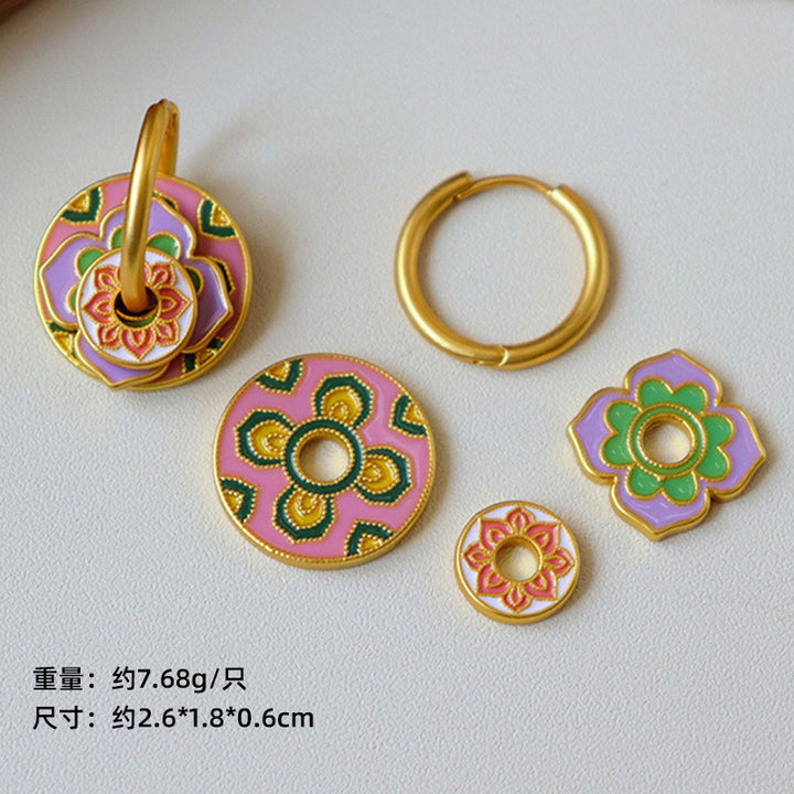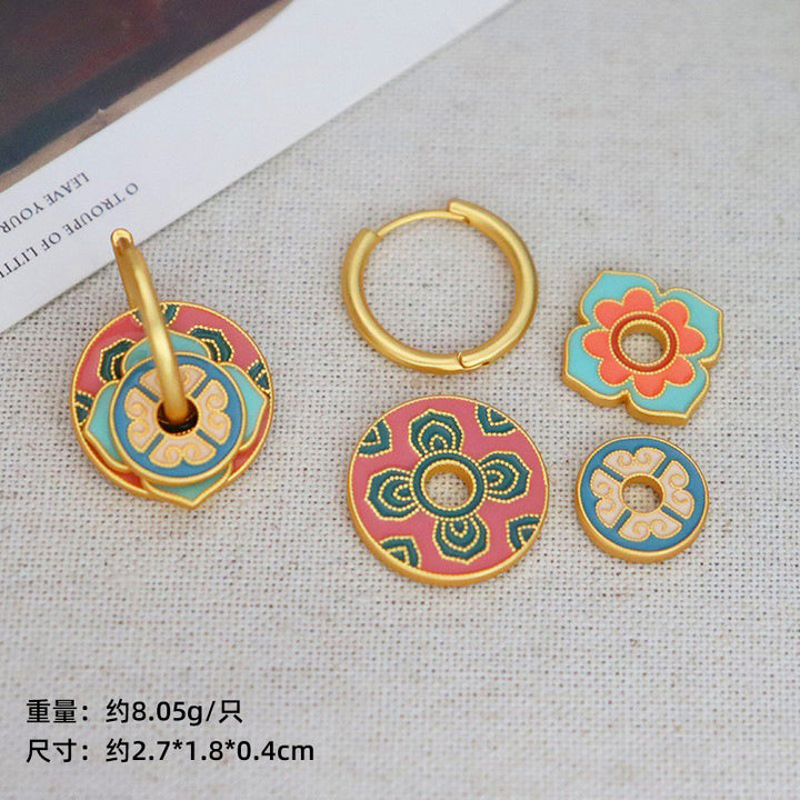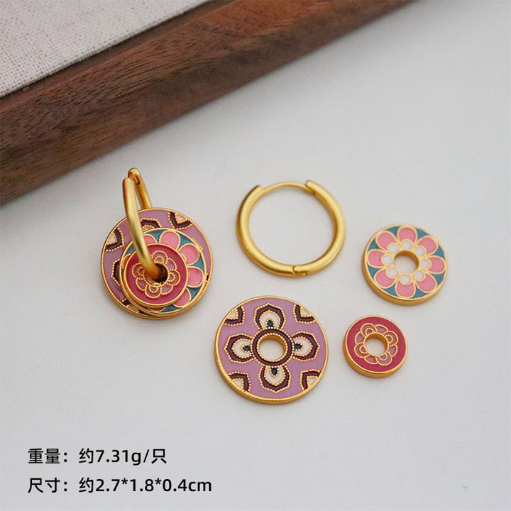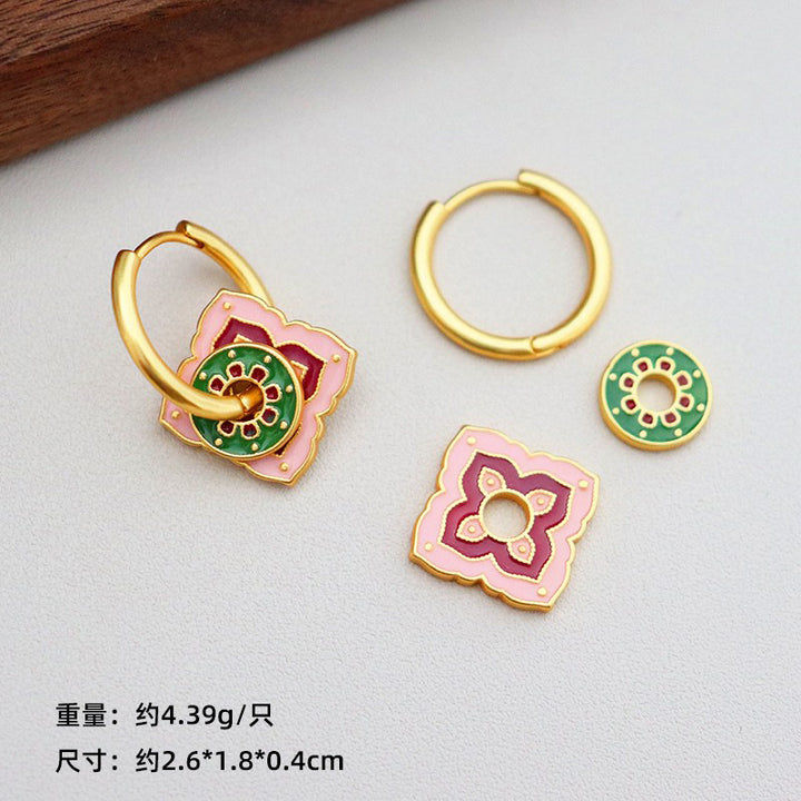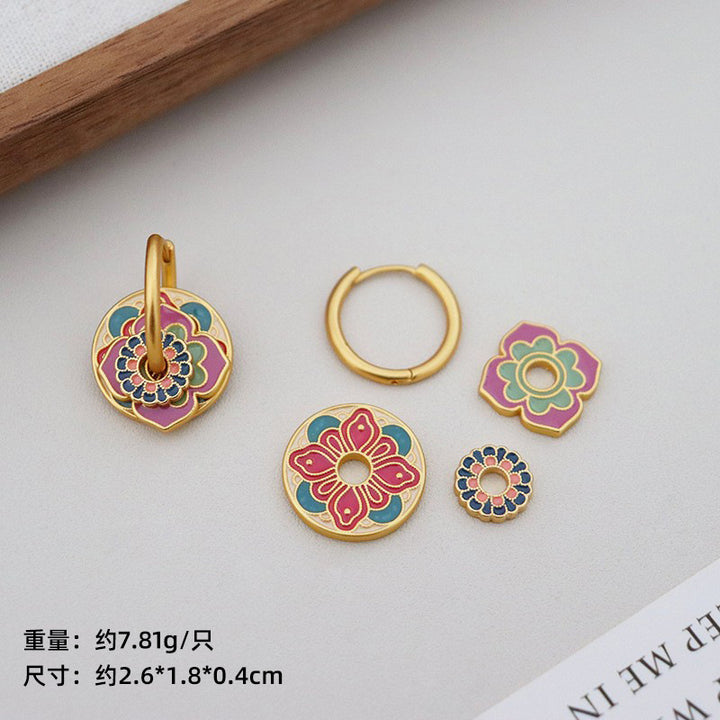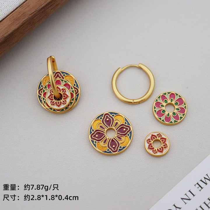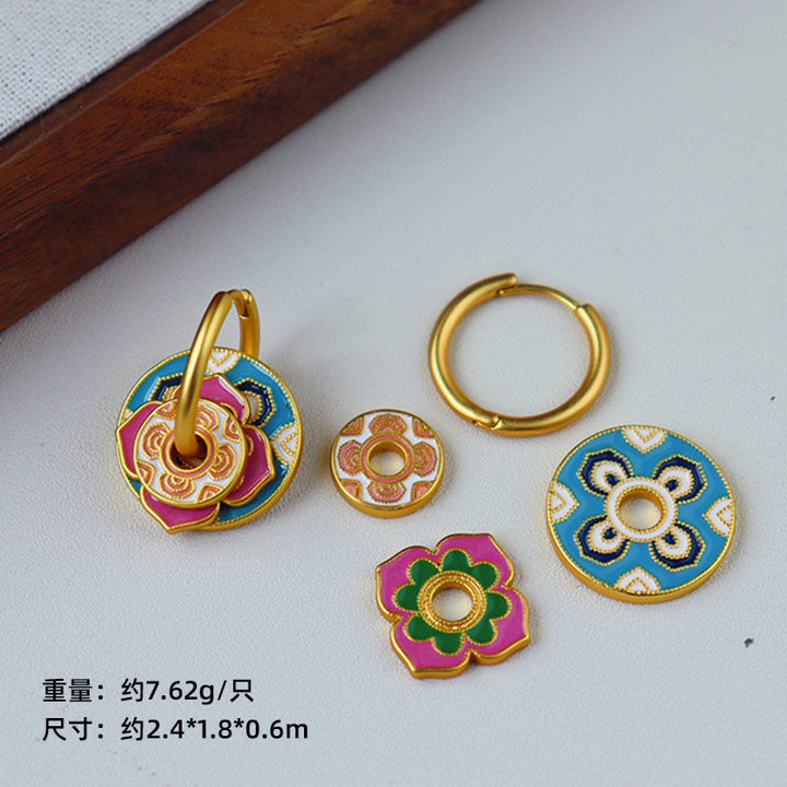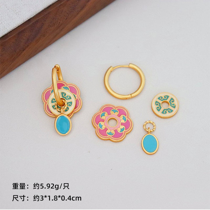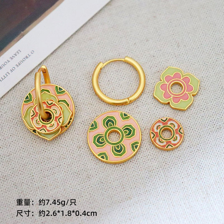 Color oil drop enamel earrings, ear buckles, fashionable and exquisite retro earrings.