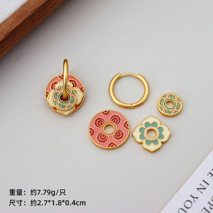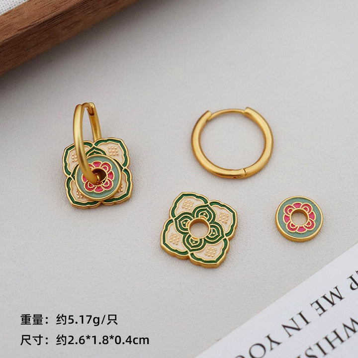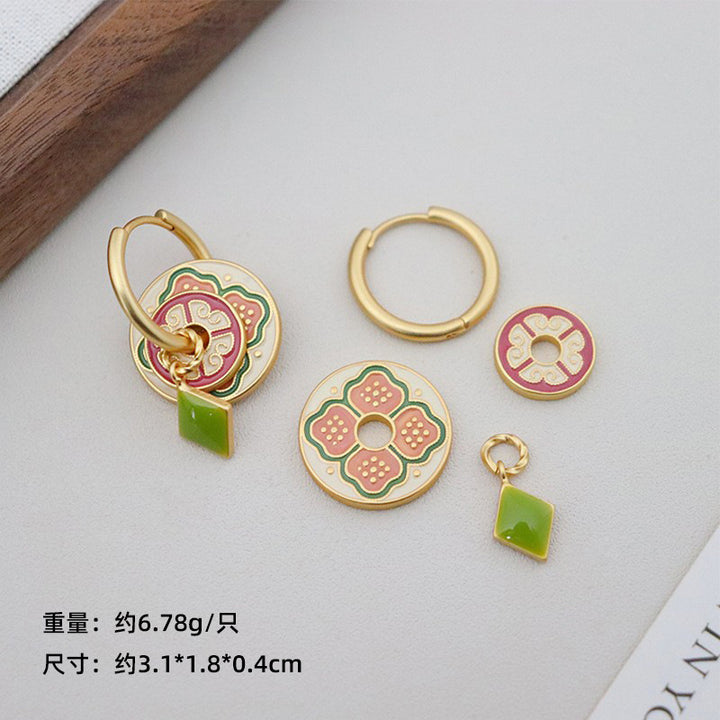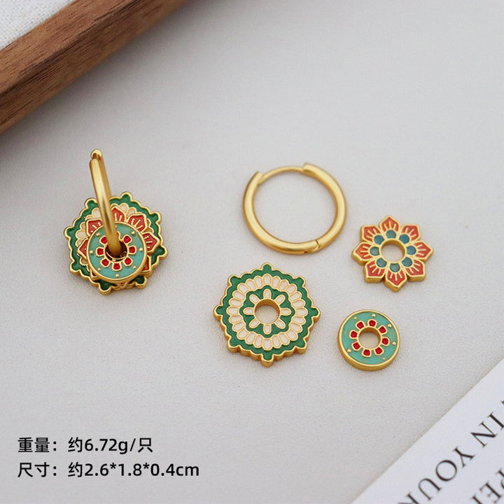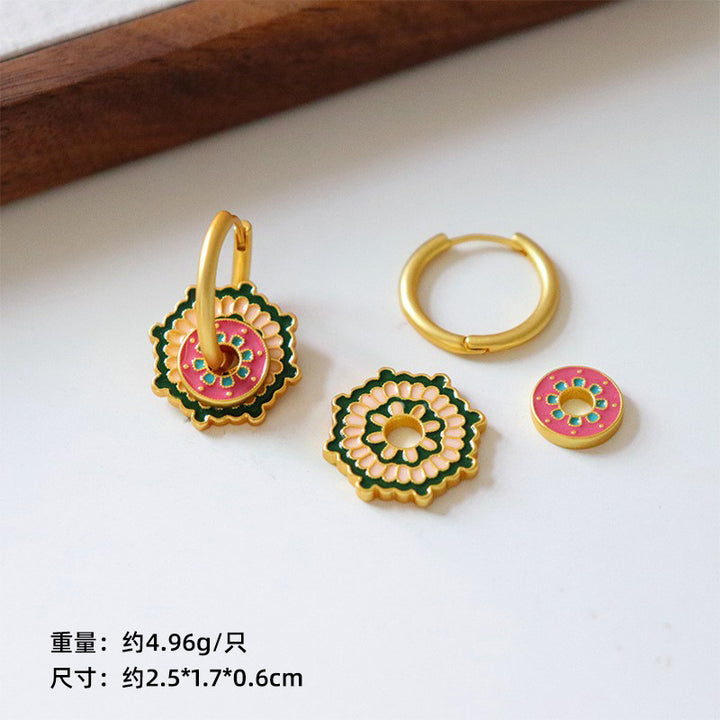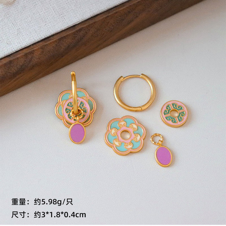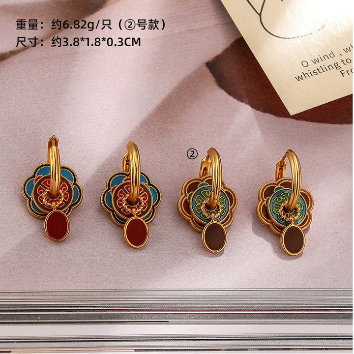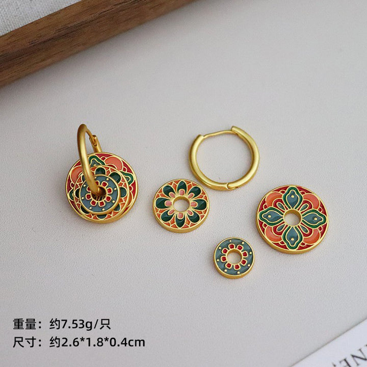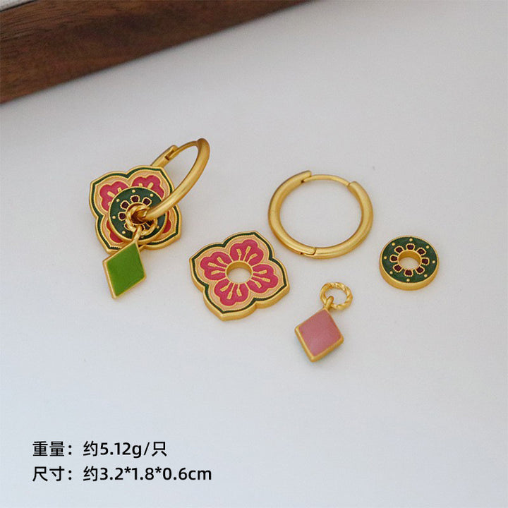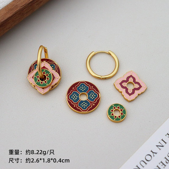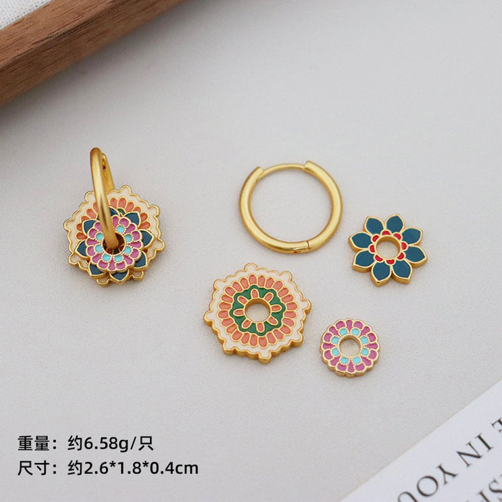 Color oil drop enamel earrings, ear buckles, fashionable and exquisite retro earrings.