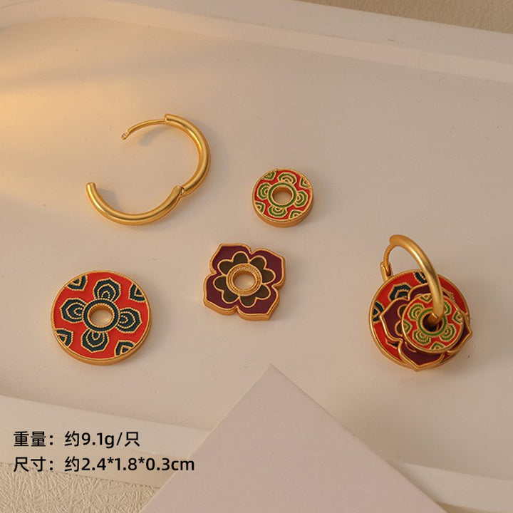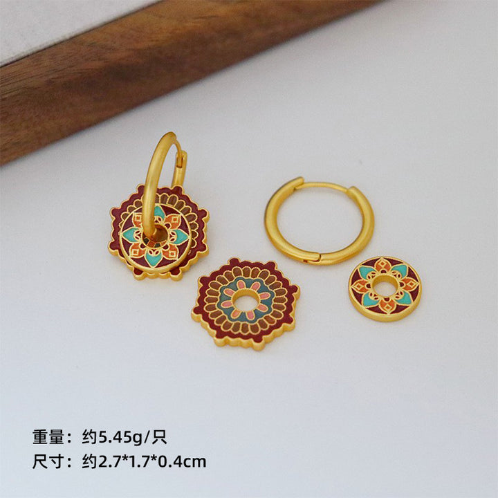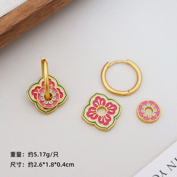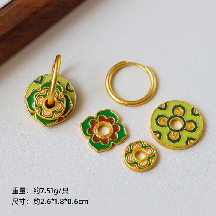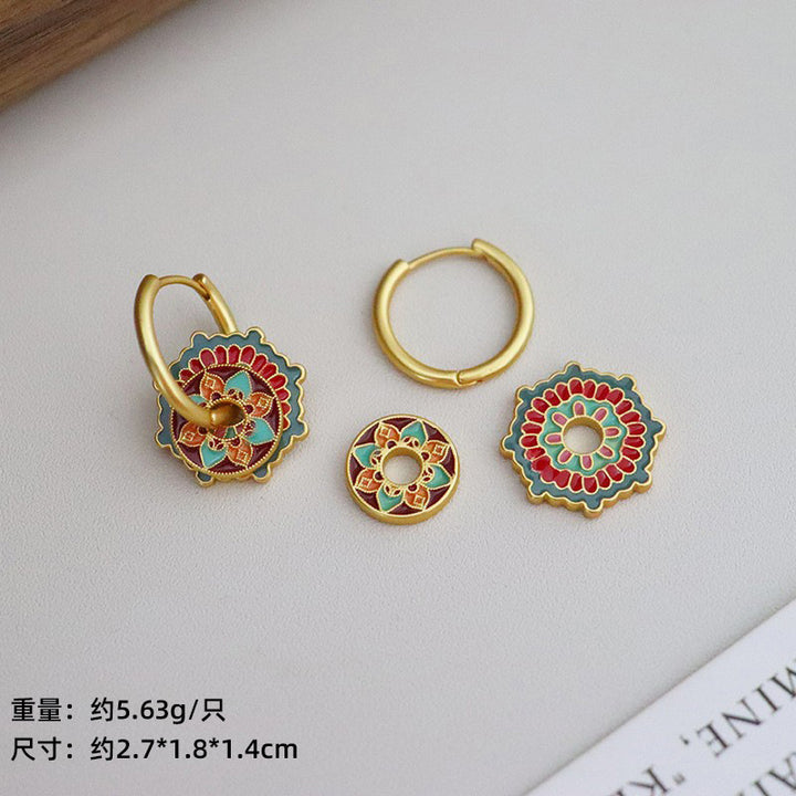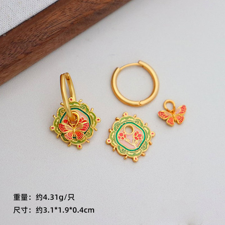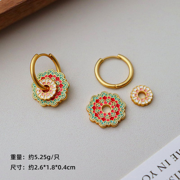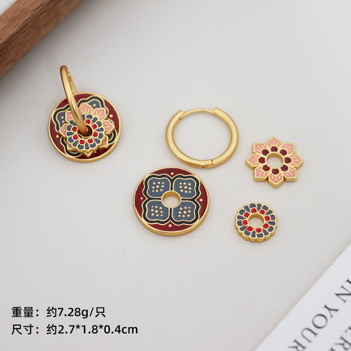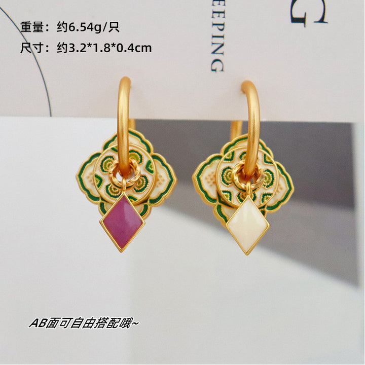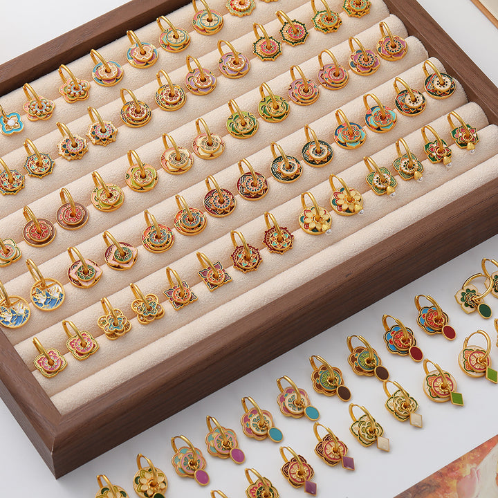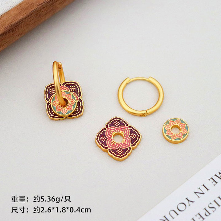 Color oil drop enamel earrings, ear buckles, fashionable and exquisite retro earrings.