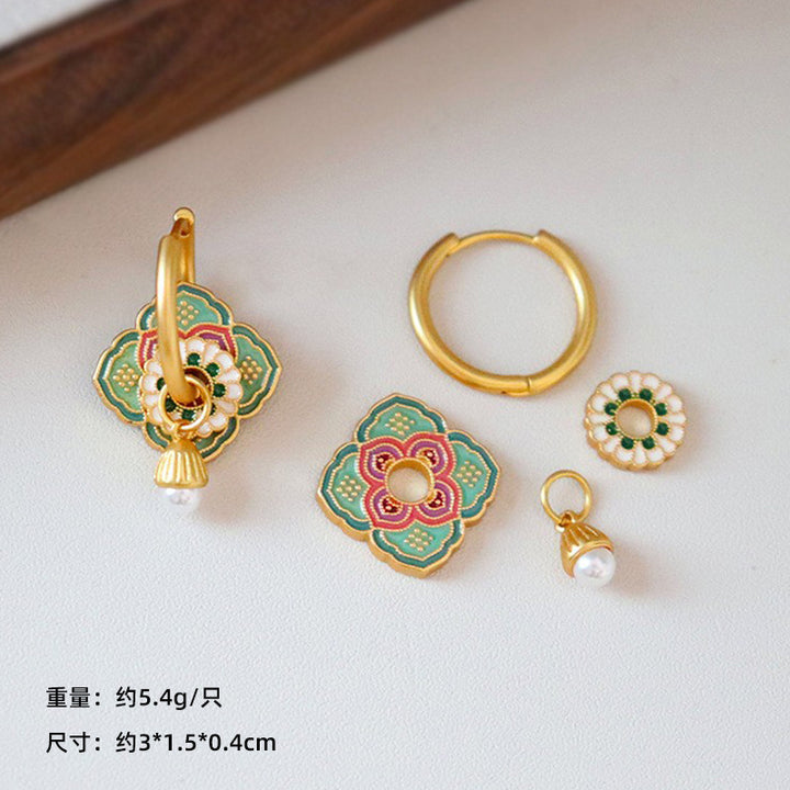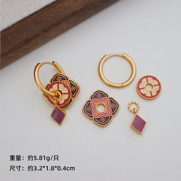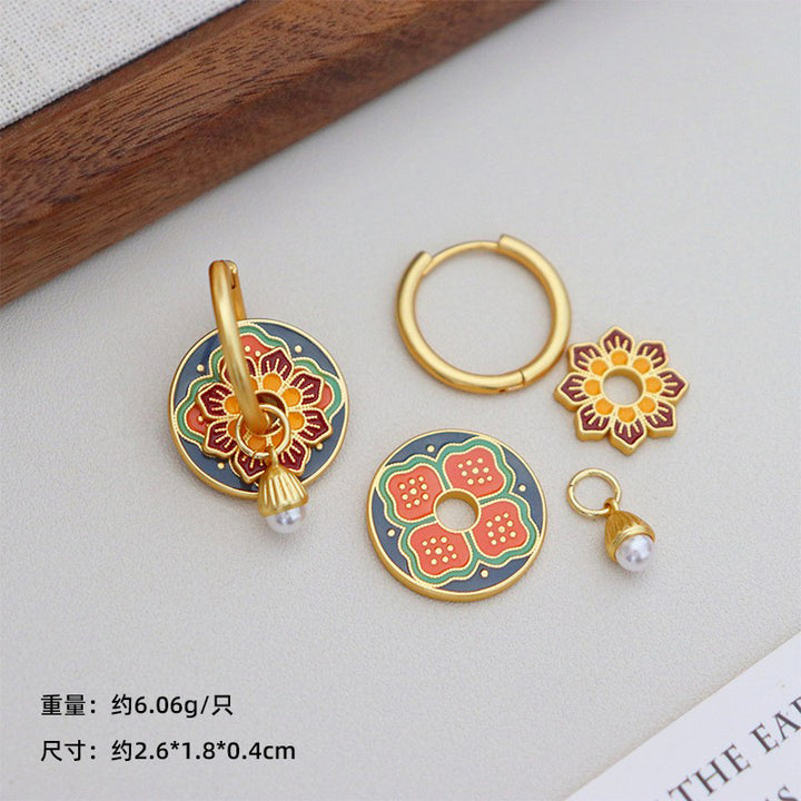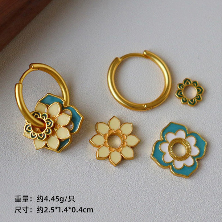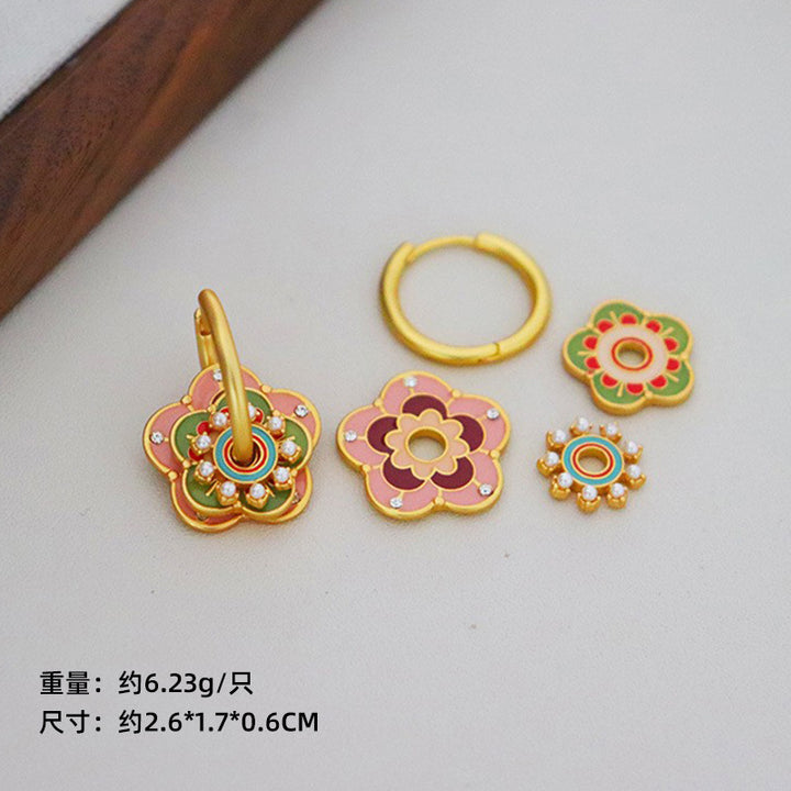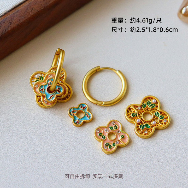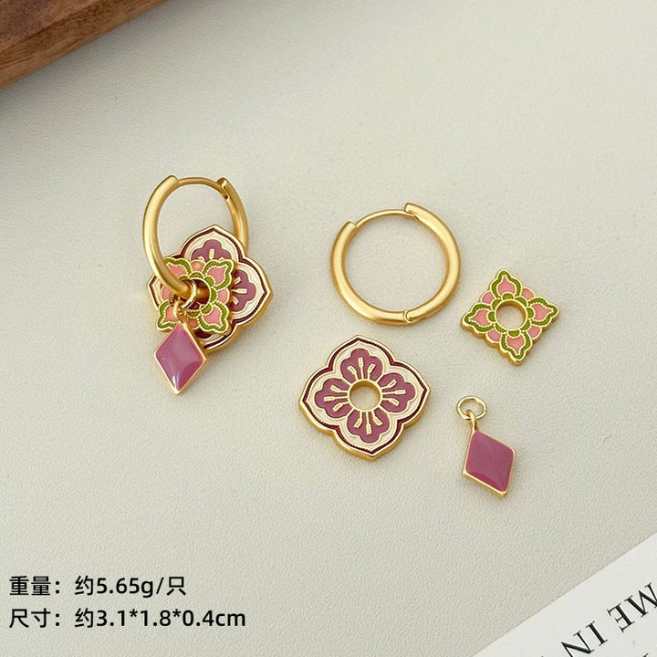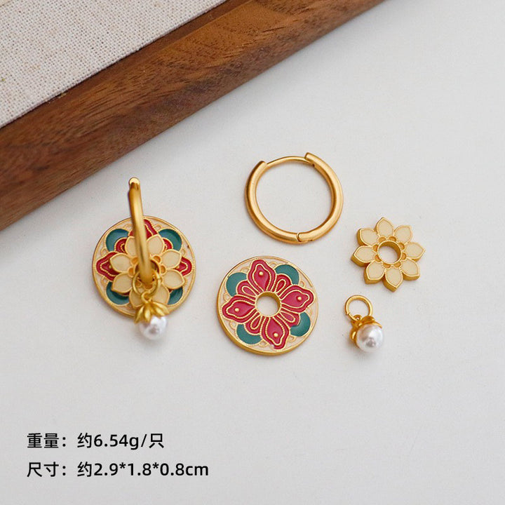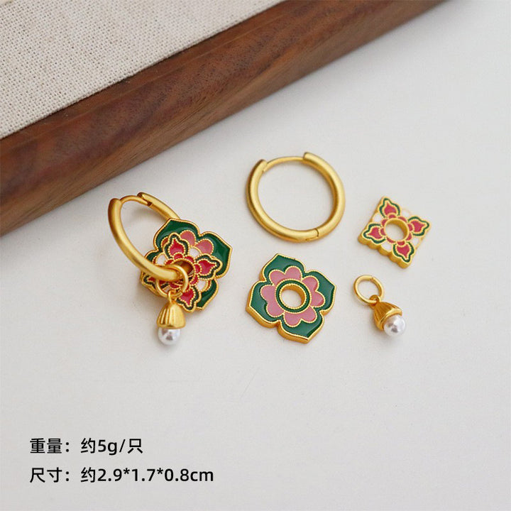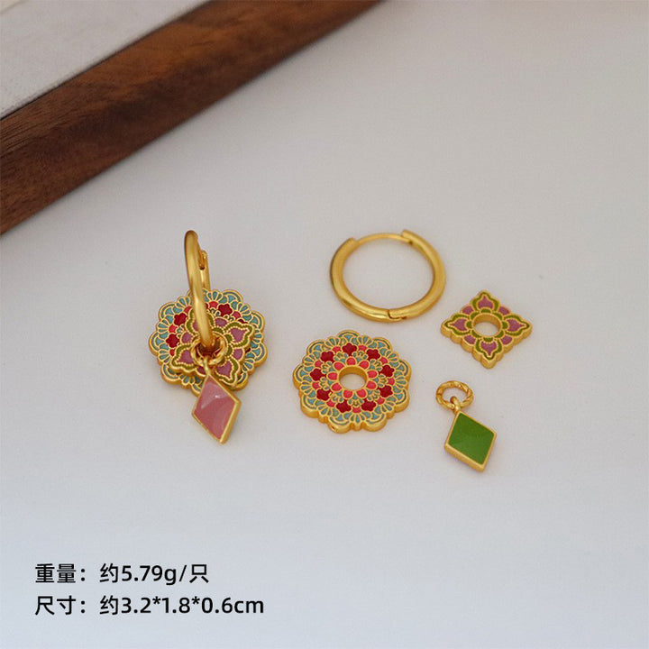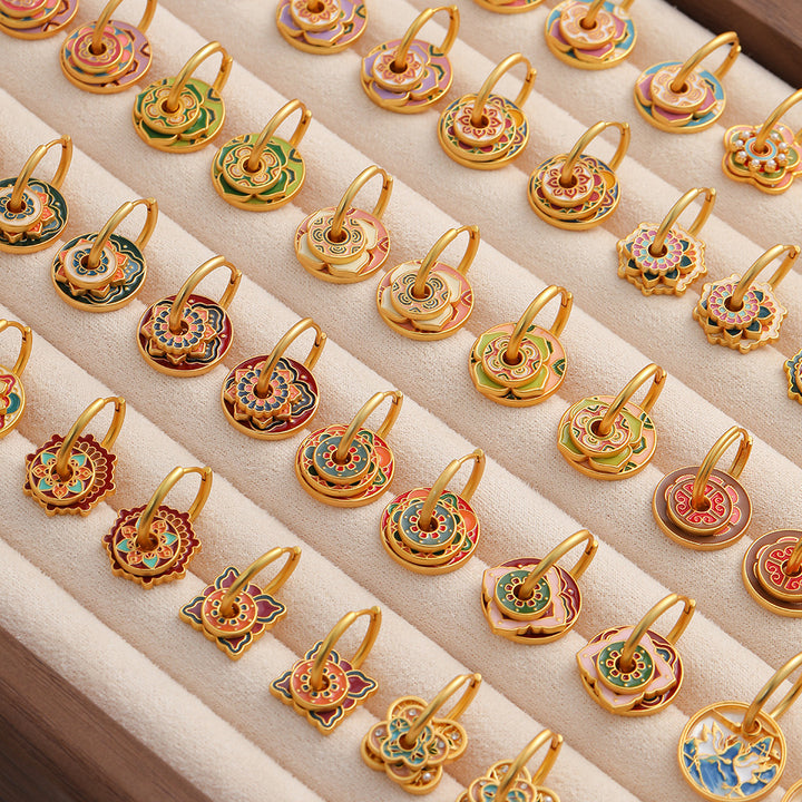 Color oil drop enamel earrings, ear buckles, fashionable and exquisite retro earrings.