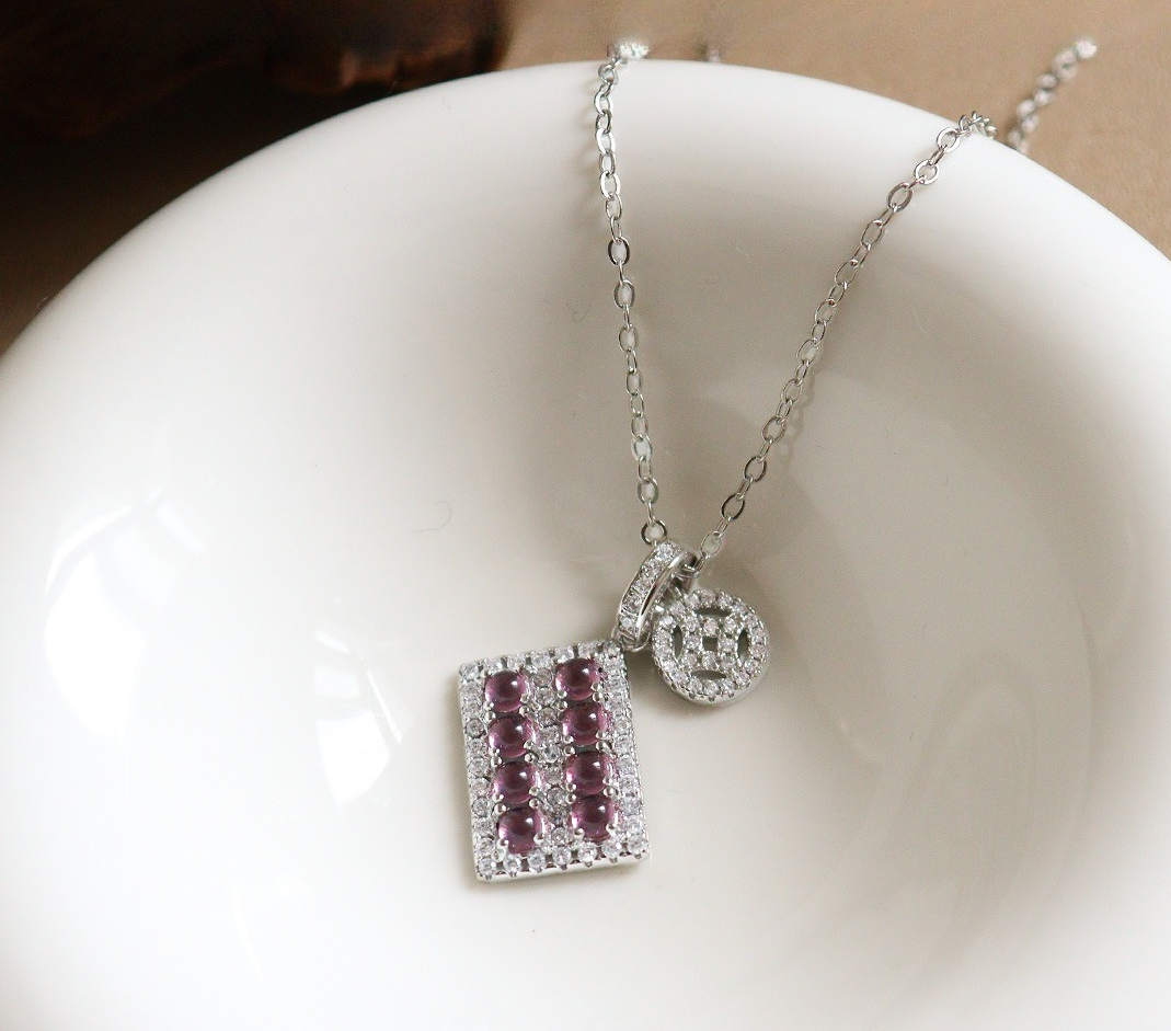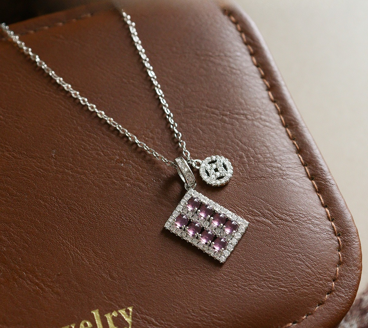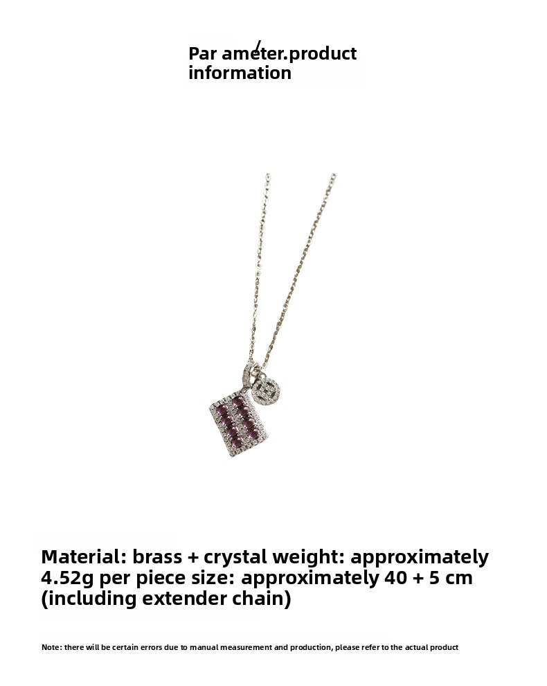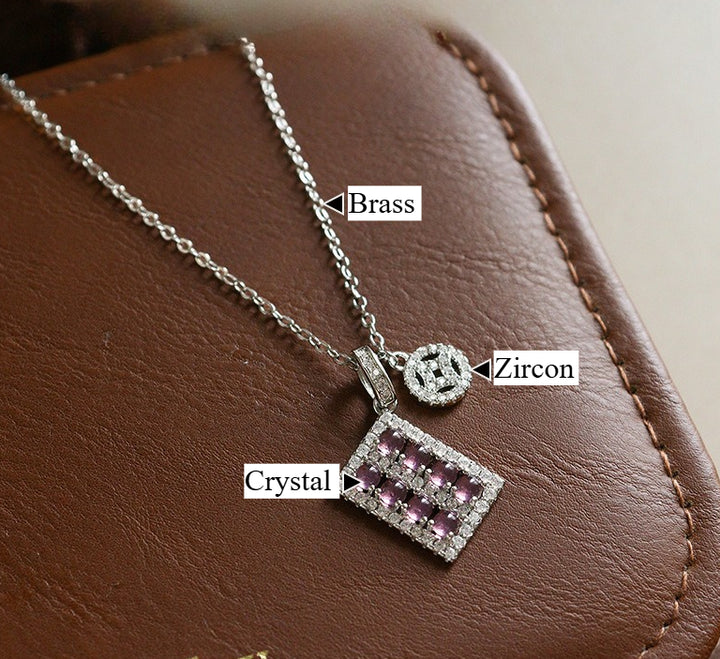 Fashion exquisite temperament versatile crystal small square brand pendant necklace