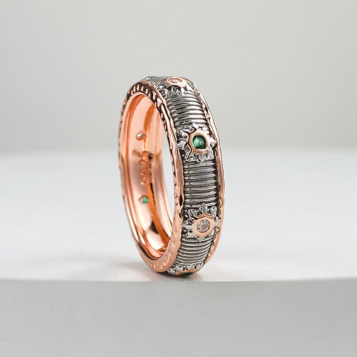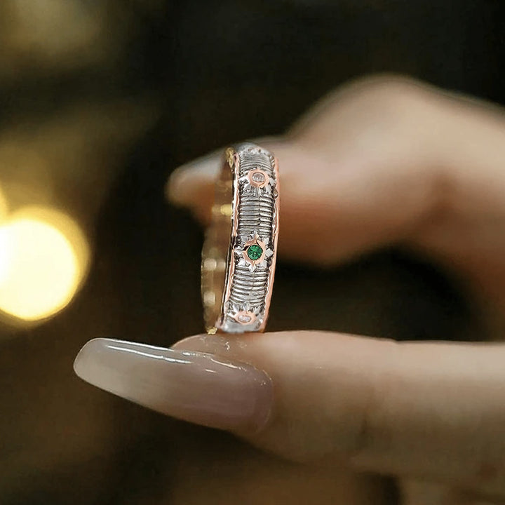 Brushed Craft Striped Two-Color Gold Ring Narrow Romantic Ring Ring
