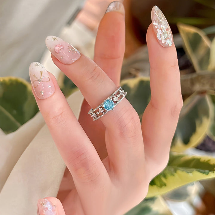 S925 Silver Sea Blue Diamond Fireworks Cut Ring