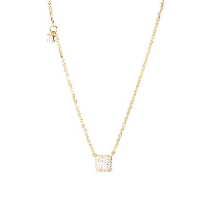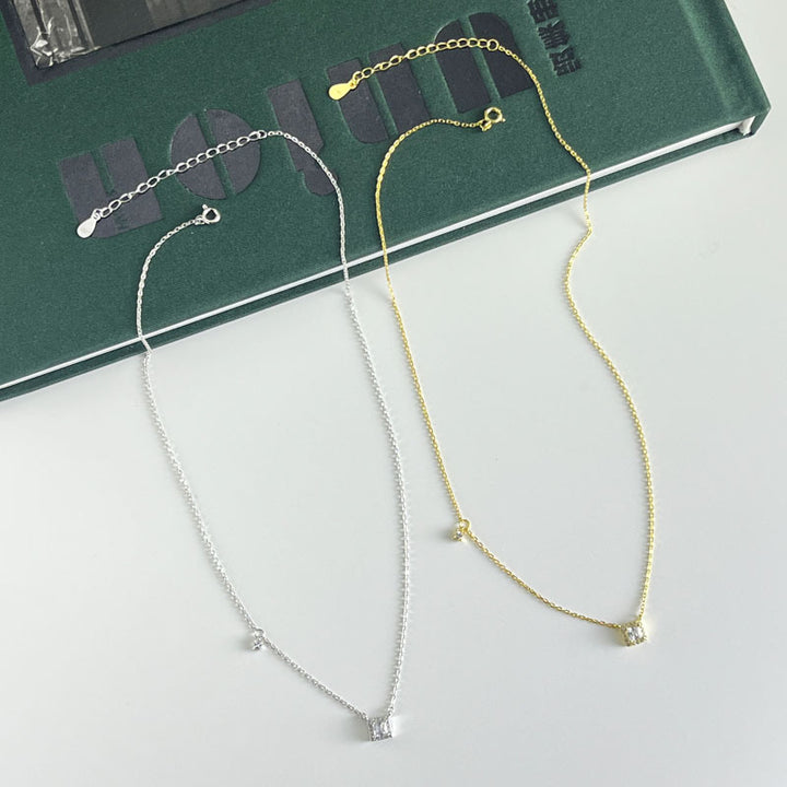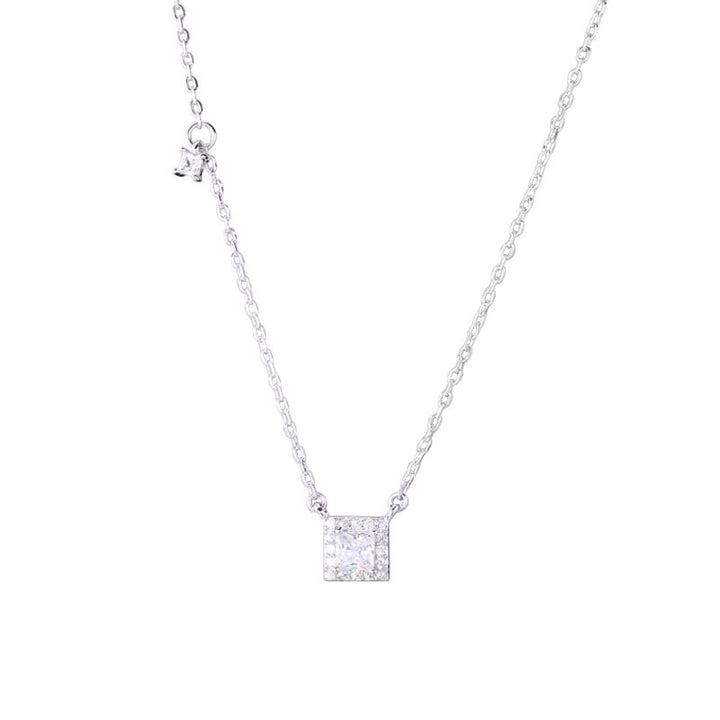 Square Diamond Necklace Sterling Silver Clavicle Chain Delicate Diamond Necklace