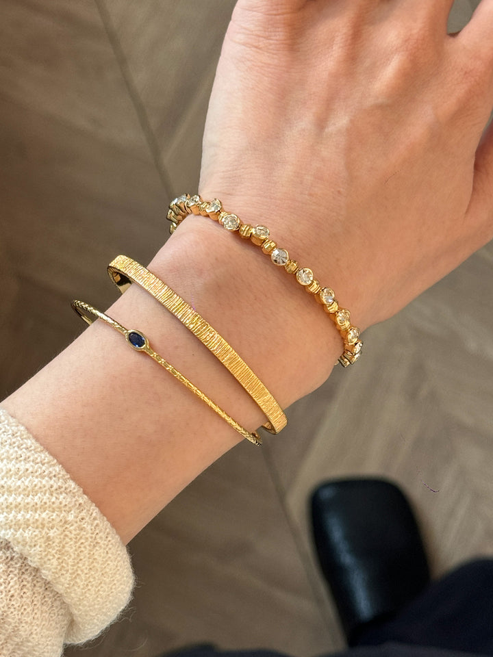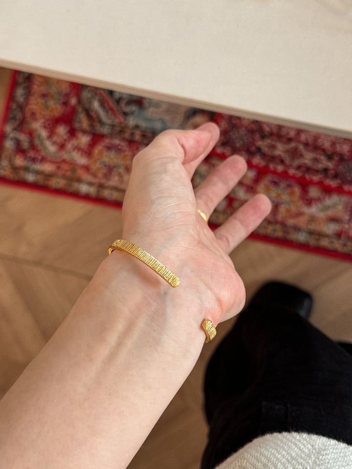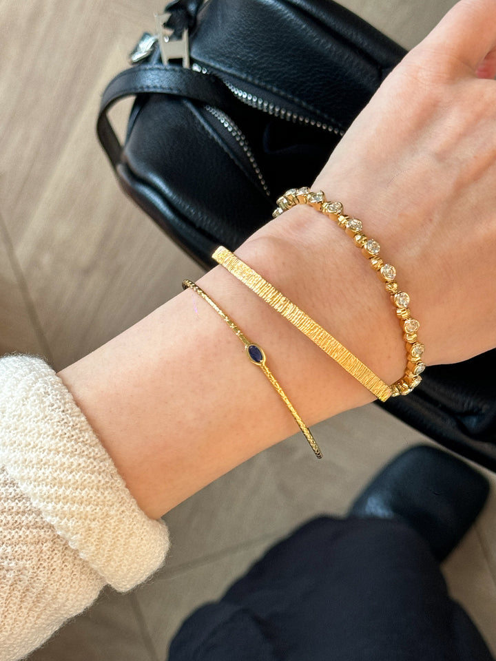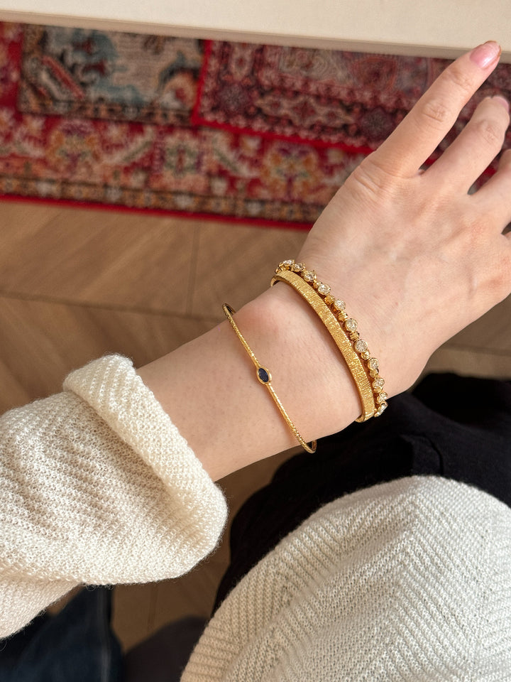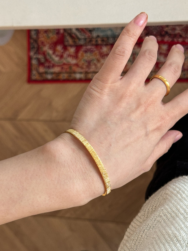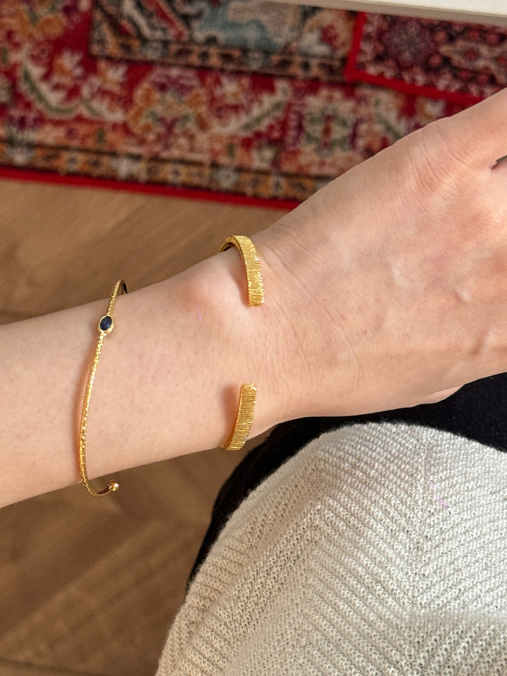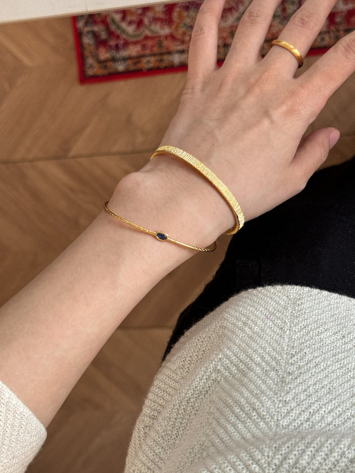 Stackable Gold Blue Hao Stone Vertical Stripe Wide Edge Thin Half Bracelet Vintage Simple Elegant High-end Bracelet for Women
