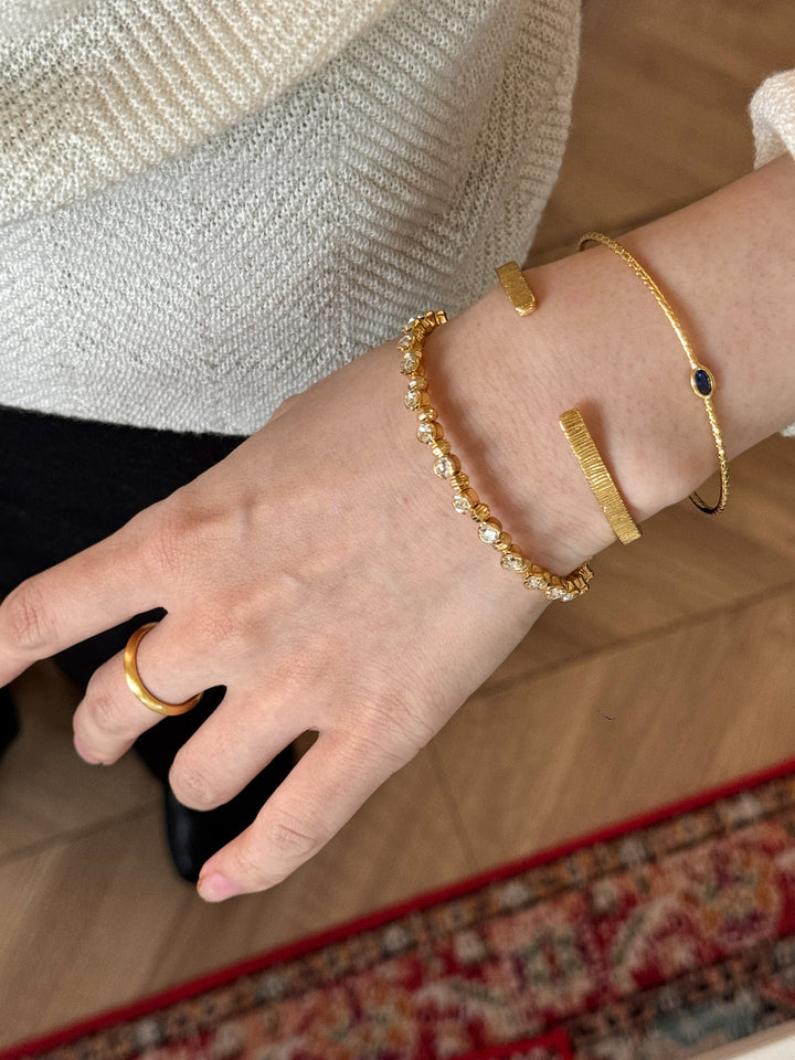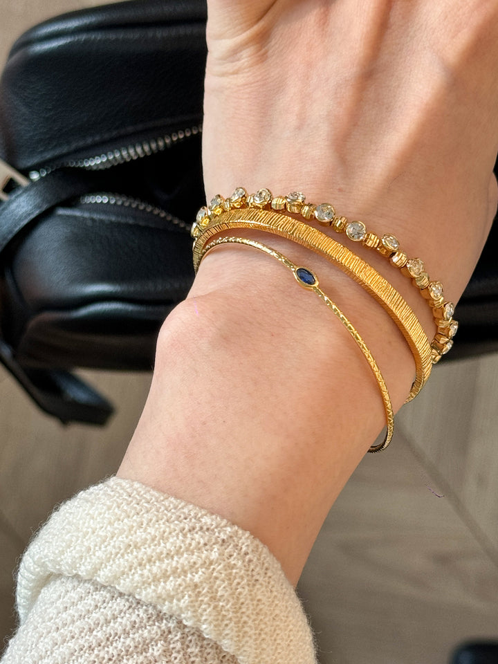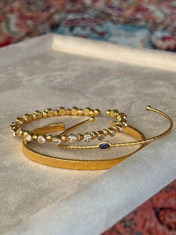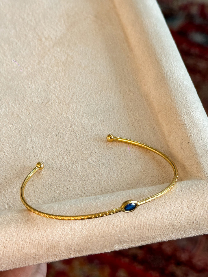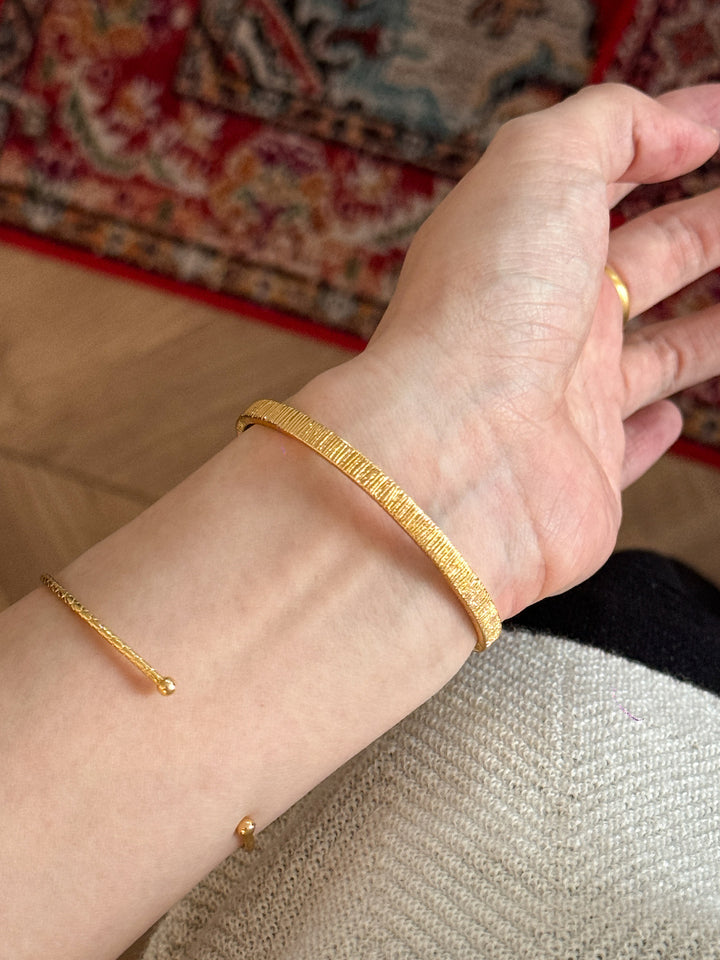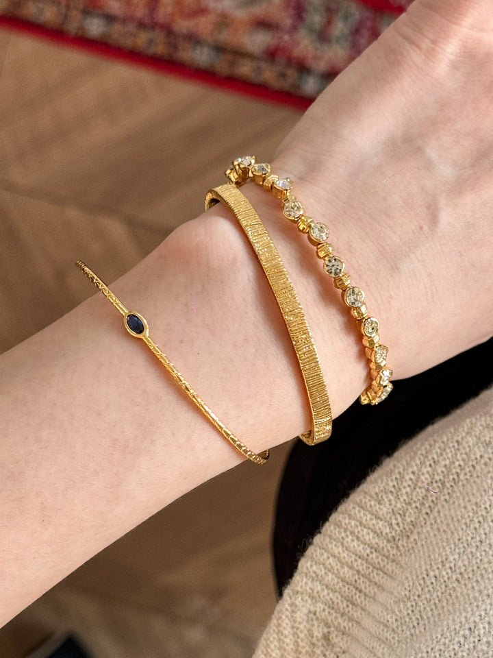 Stackable Gold Blue Hao Stone Vertical Stripe Wide Edge Thin Half Bracelet Vintage Simple Elegant High-end Bracelet for Women