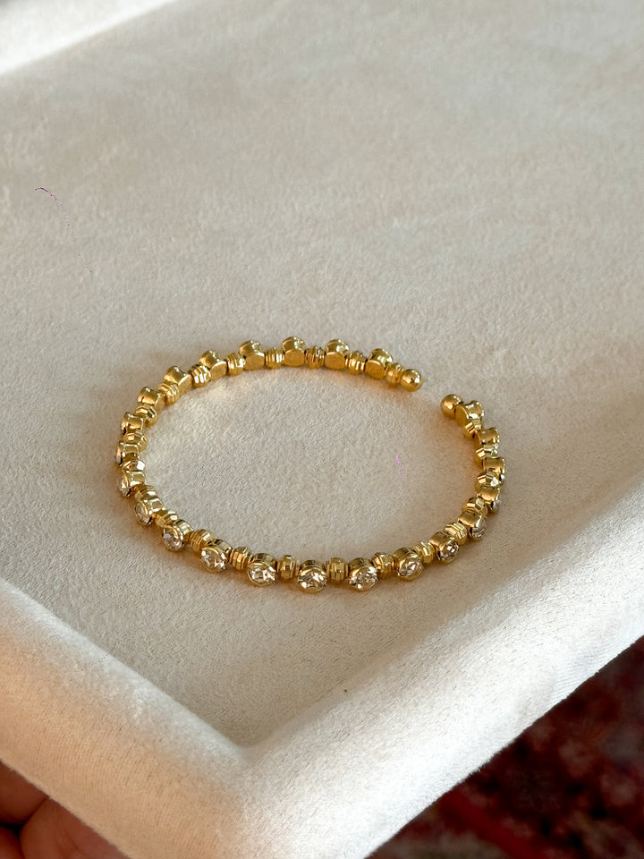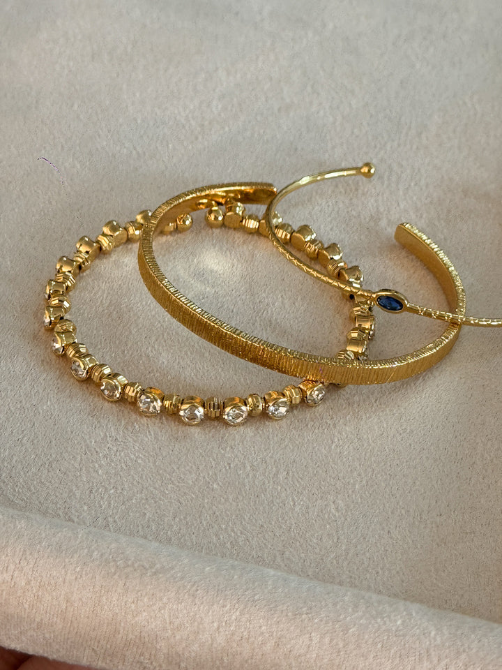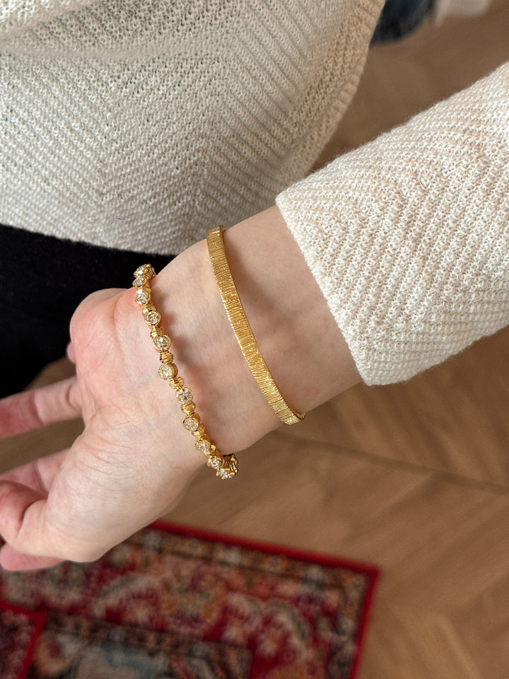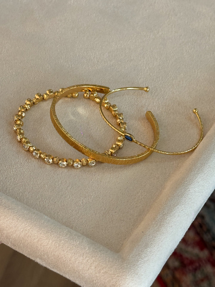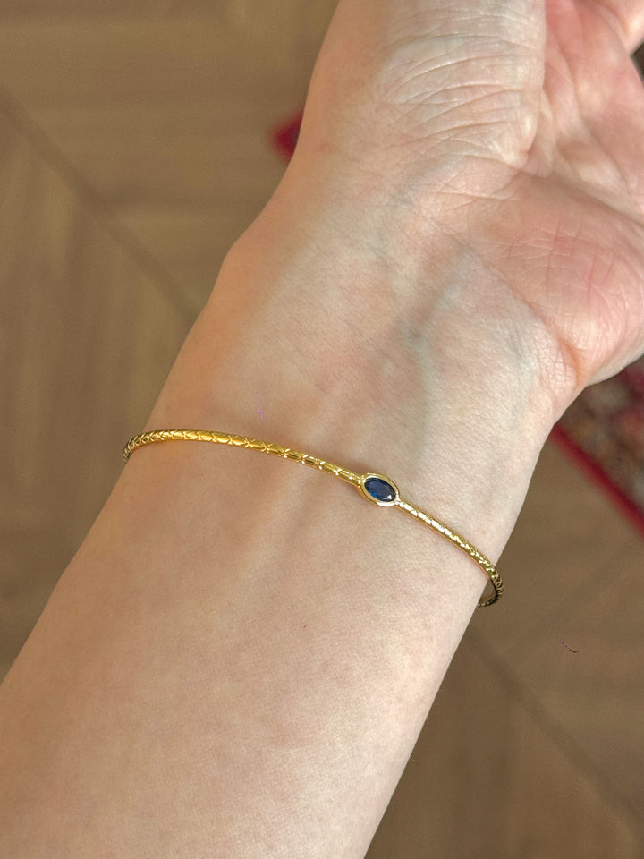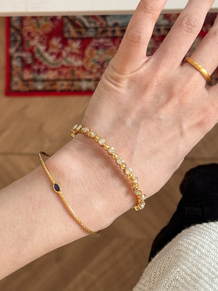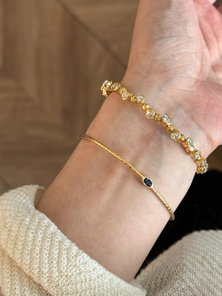 Stackable Gold Blue Hao Stone Vertical Stripe Wide Edge Thin Half Bracelet Vintage Simple Elegant High-end Bracelet for Women
