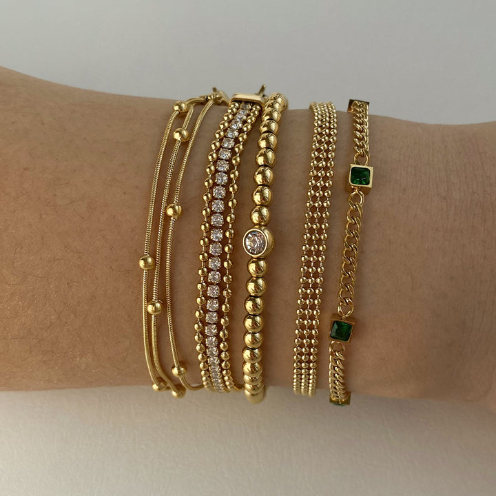 Stacked Small Gold Beads Gold Chain Bracelet Titanium Steel