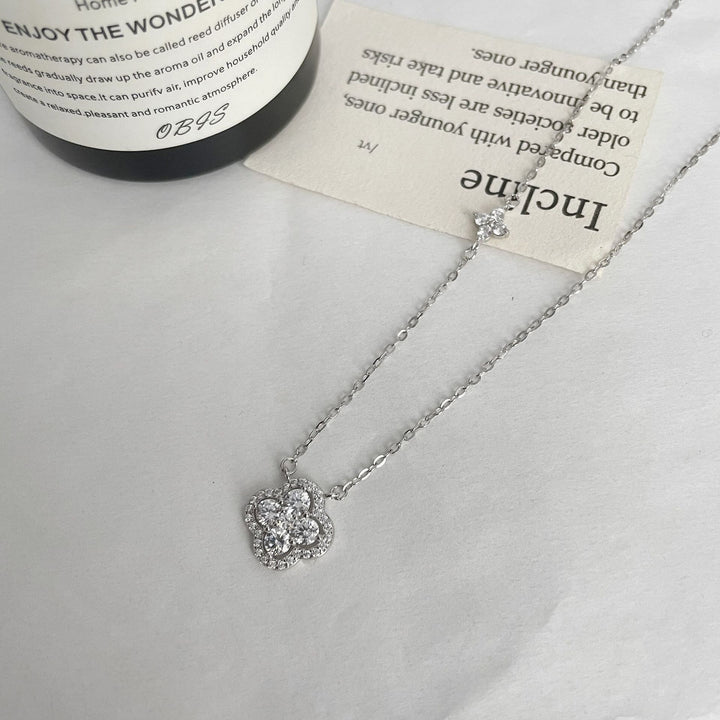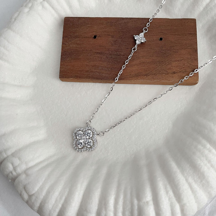 S925 Sterling Silver Flash Clover Necklace Full Diamond Lucky Flower Collarbone Chain