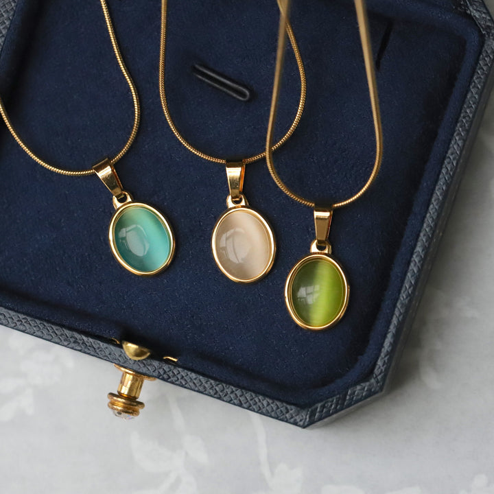 Titanium steel gold-plated non-fading mysterious retro style three-color opal oval necklace method