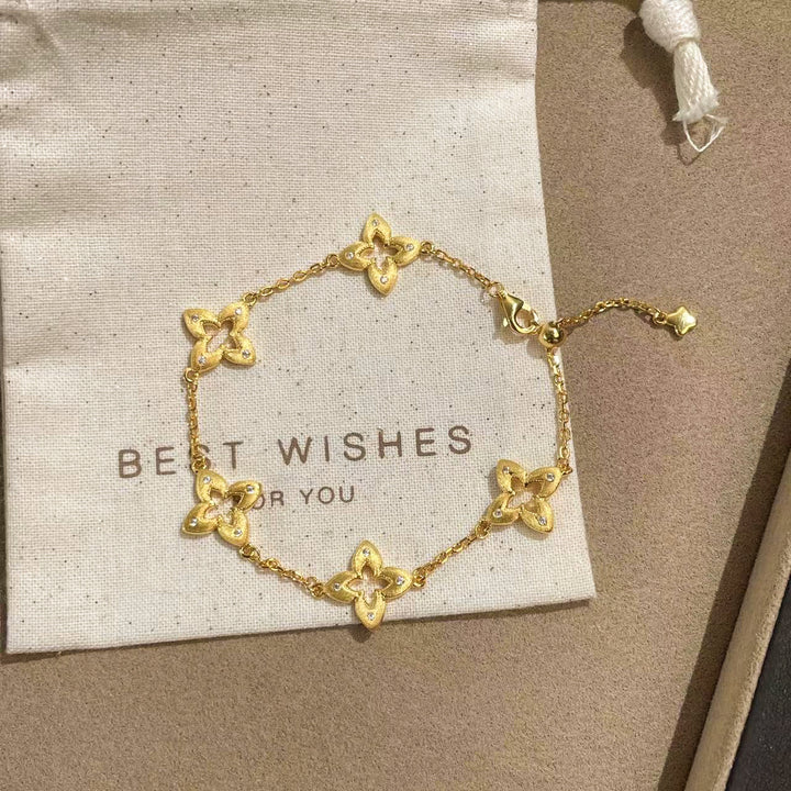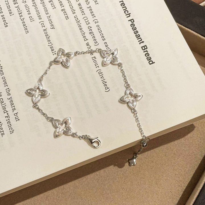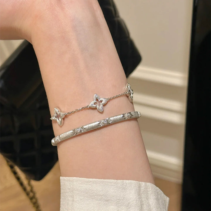 S925 sterling silver antique brushed four-leaf clover bracelet, women's heavy industry model, hollow tetragonal star jewelry bracelet tide
