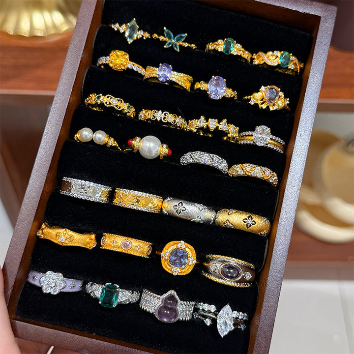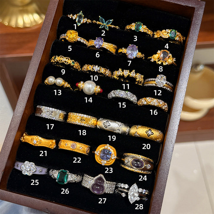 Fashion light luxury zircon pearl ring women's retro ring
